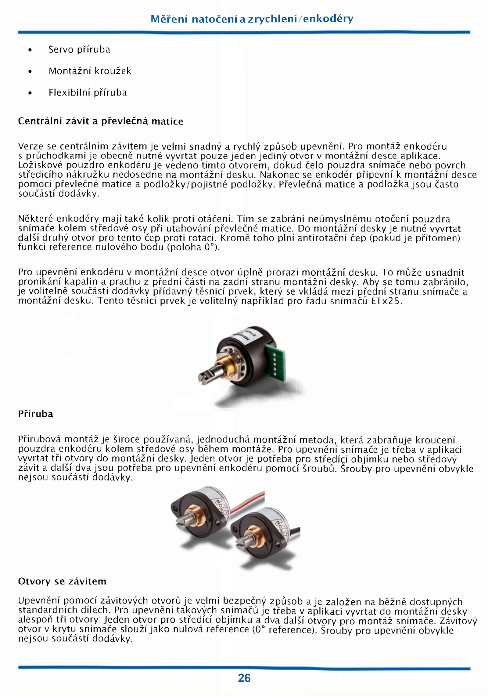 závit další dva jsou potřeba pro upevnění enkodéru pomocí šroubů. Pro upevnění takových snímačů třeba aplikaci vyvrtat montážní desky