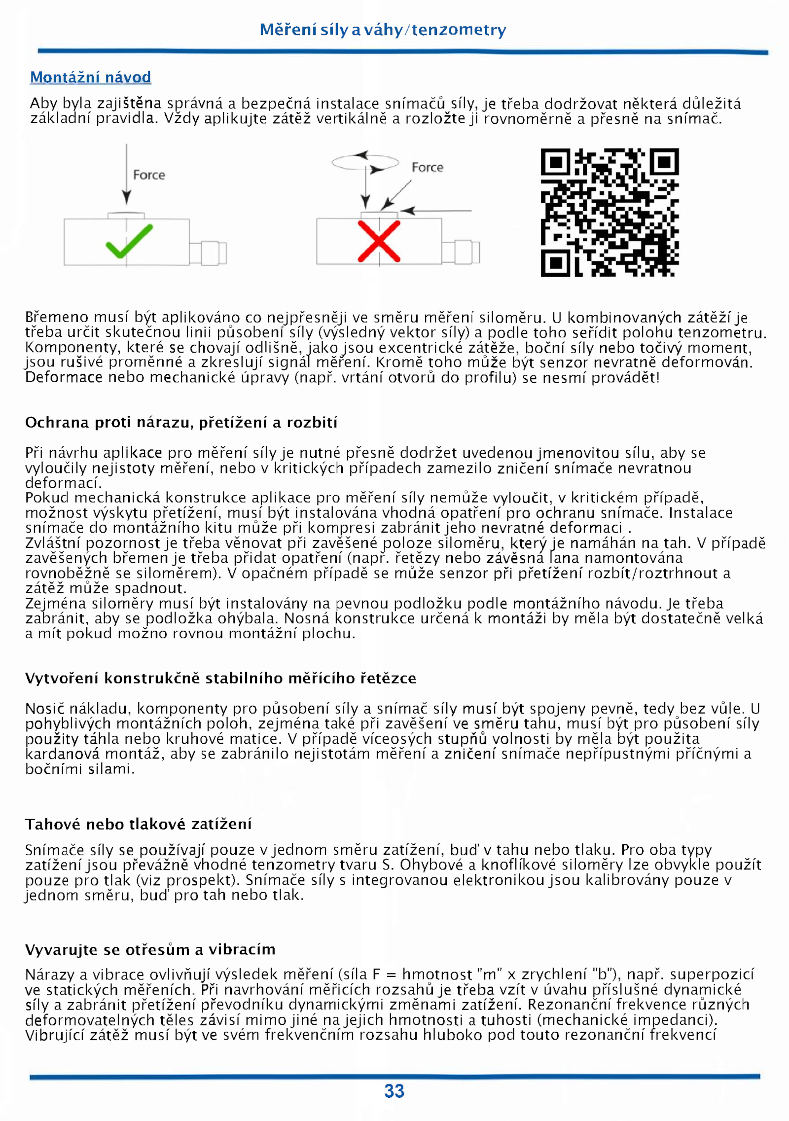 Zejména siloměry musí být instalovány pevnou podložku podle montážního návodu.Měření sílya váhy/tenzometry