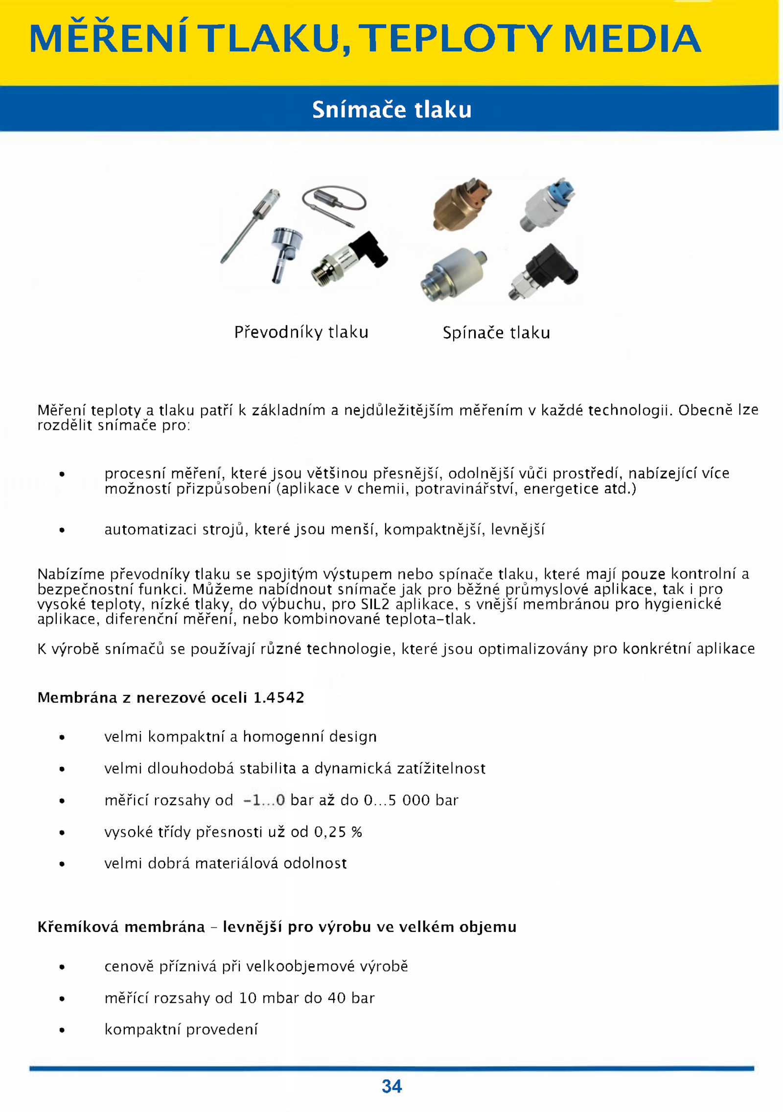 možností přizpůsobení (aplikace chemii, potravinářství, energetice atd.MĚŘENÍ TLAKU, TEPLOTY MEDIA