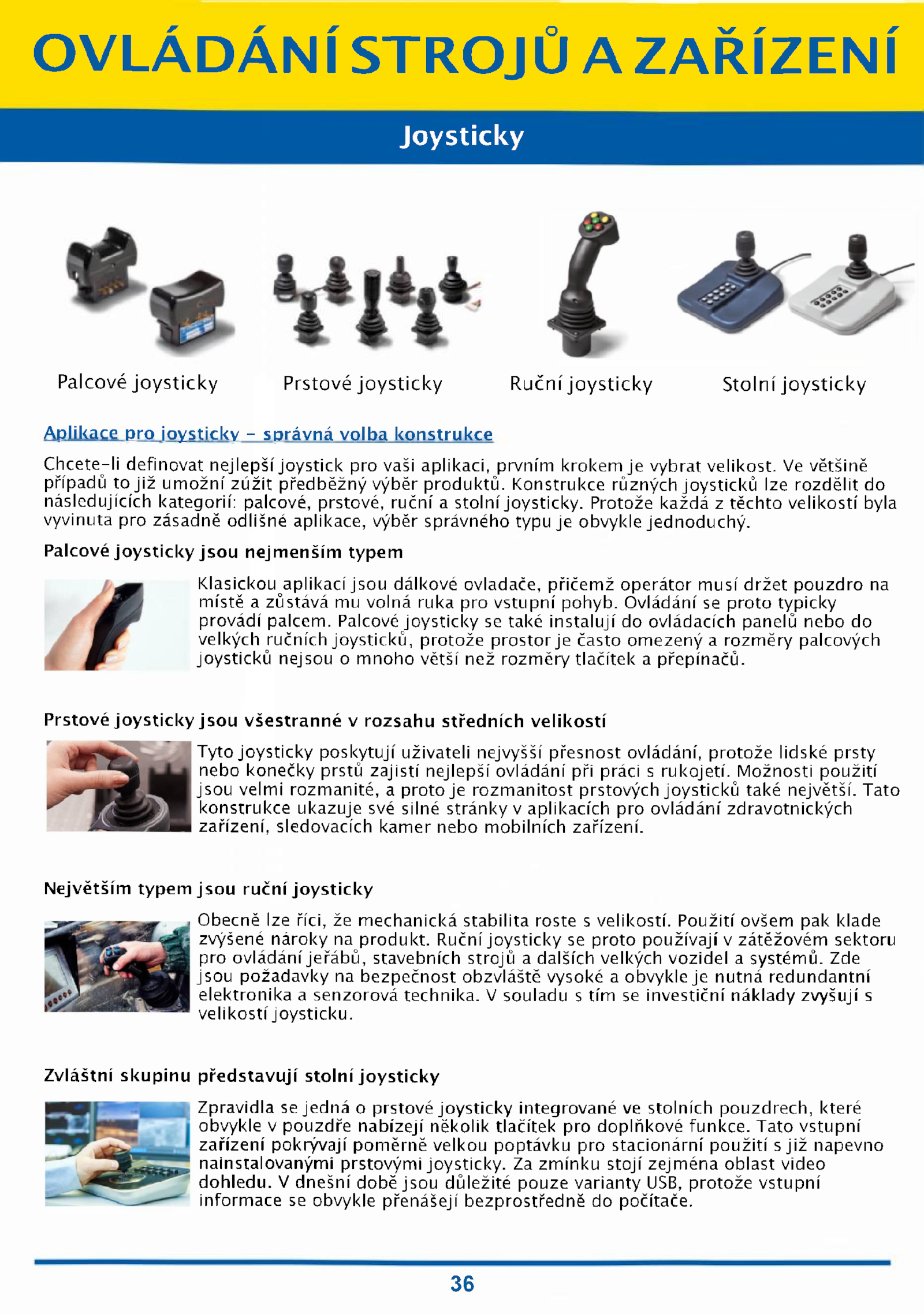 následujících kategorií: palcové, prstové, ruční stolní joysticky.