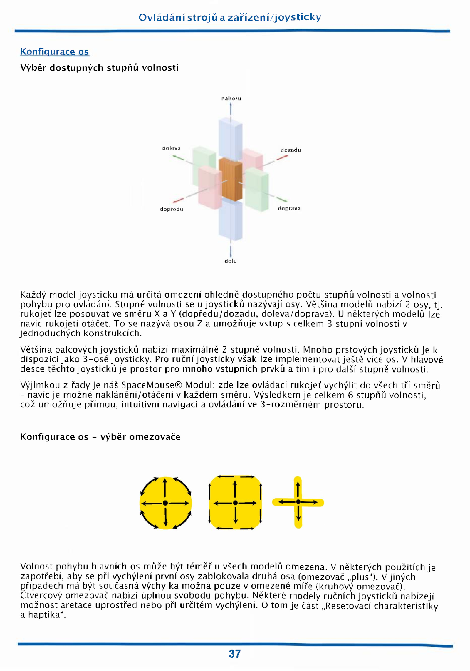 jednoduchých konstrukcích. Pro ruční joysticky však lze implementovat ještě více os.Ovládání strojů zařízení/joysticky