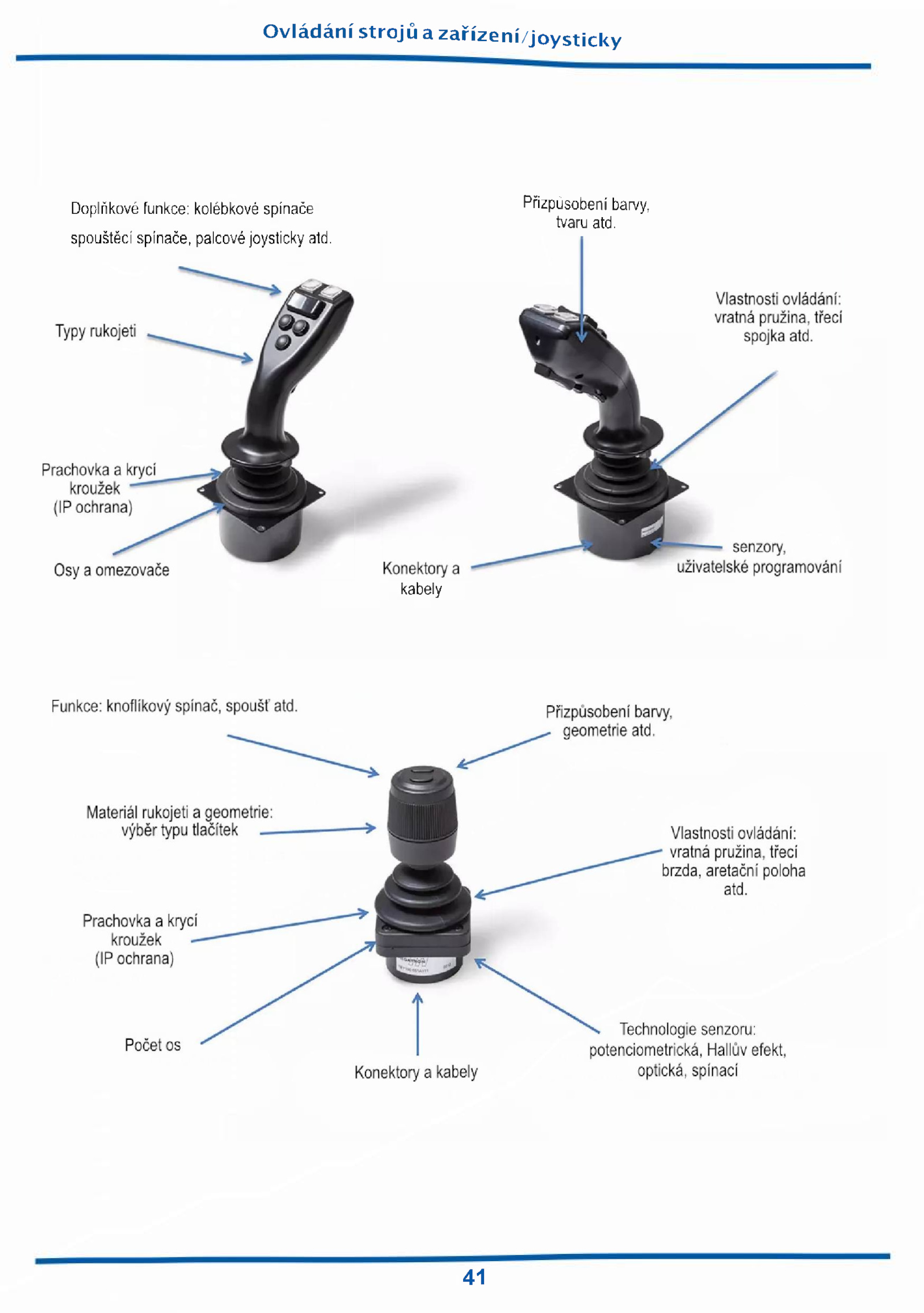 Přizpůsobeni barvy, tvaru atd.Ovládání strojů zařízení/joysticky Doplňkové funkce: kolébkové spínače spouštěcí spínače, palcové joysticky aid. kabely 41
