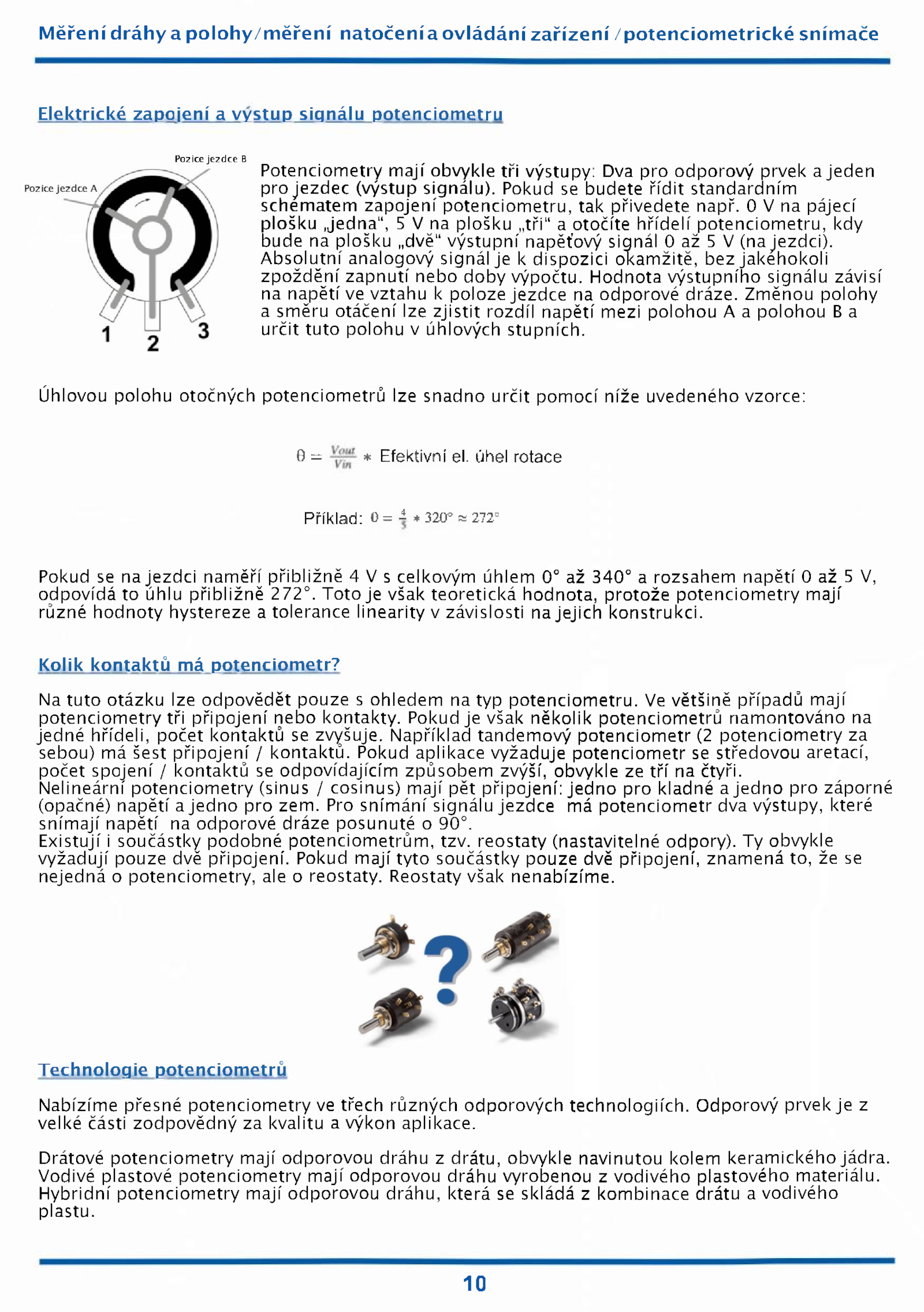 jedné hřídeli, počet kontaktů zvyšuje.Měření dráhy polohy/měření natočenia ovládání zařízení /potenciometrícké snímače