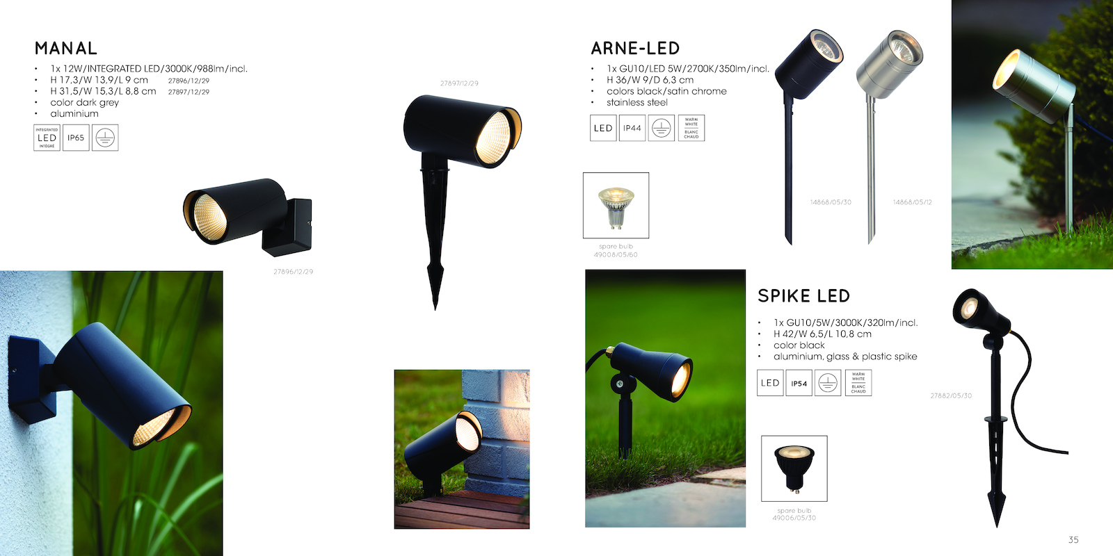 • aluminium, glass plastic spike