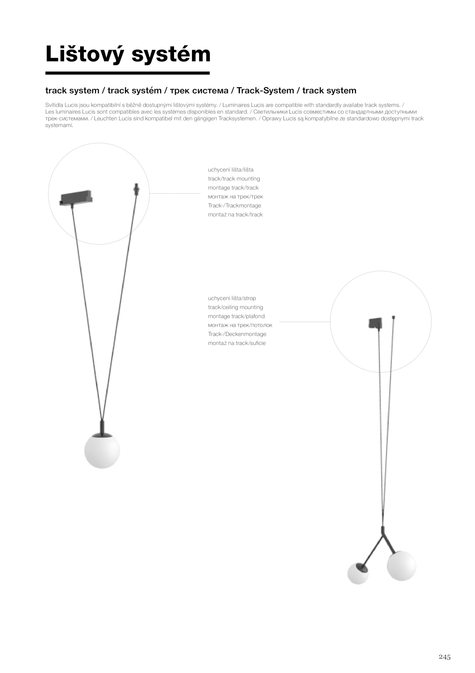 Les luminaires Lucis sont compatibles avec les systèmes disponibles standard. Luminaires Lucis are compatible with standardly availabe track systems. Leuchten Lucis sind kompatibel mit den gängigen Tracksystemen.245
