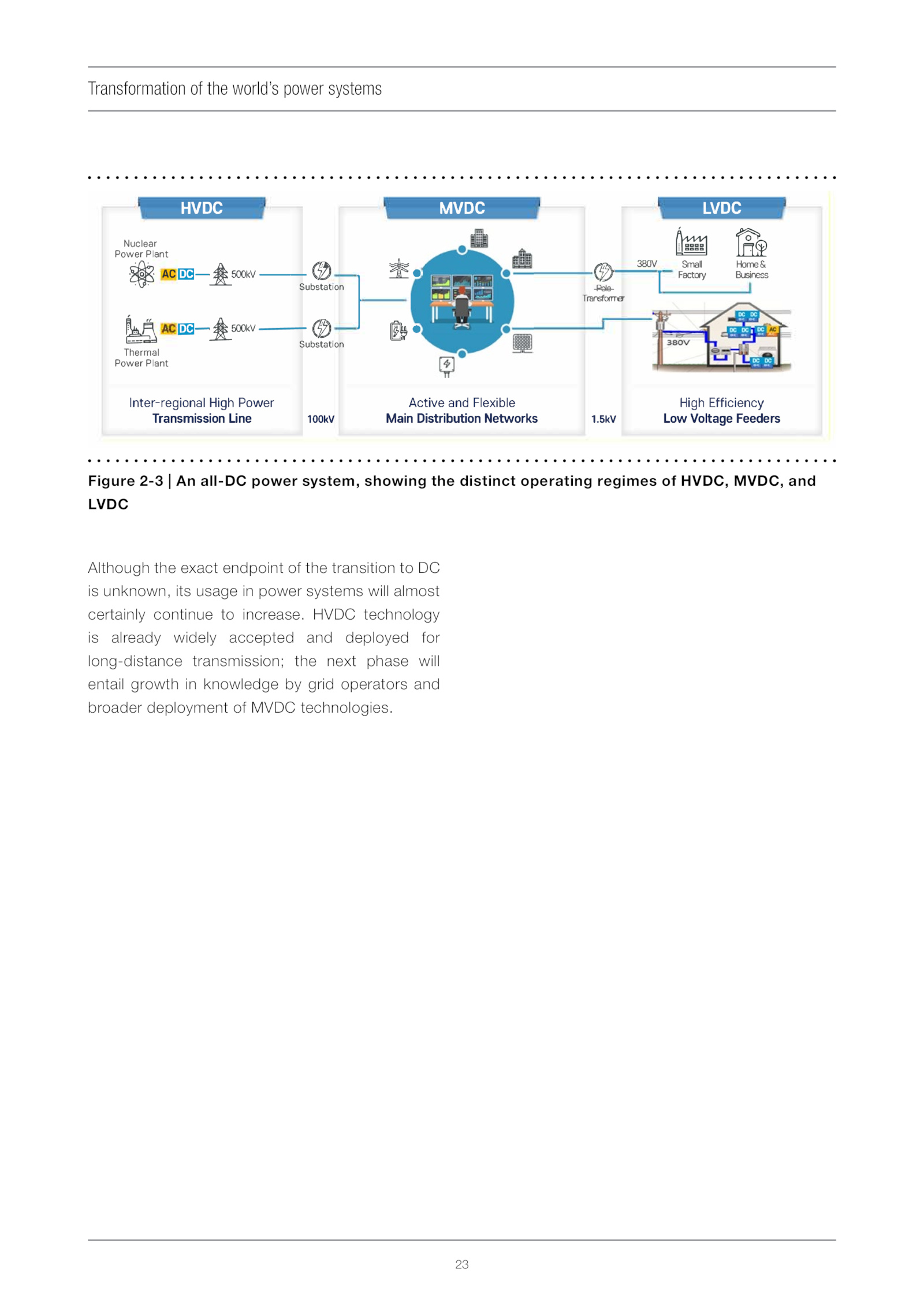 Figure 2-3 all-DC power system, showing the distinct operating regimes HVDC, MVDC, and