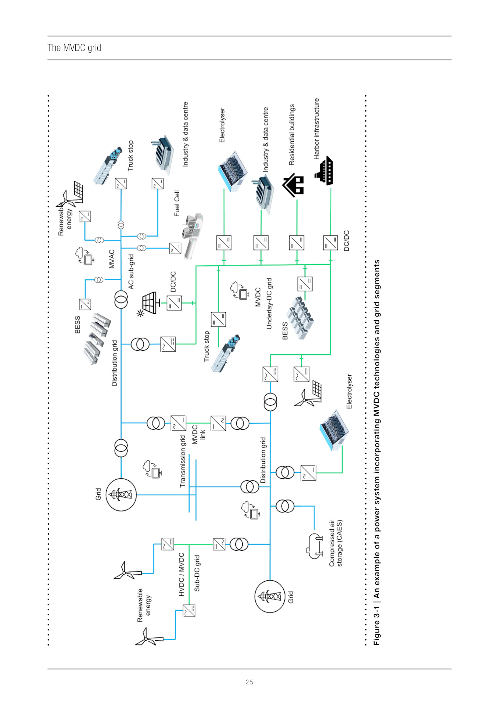 25 The MVDC grid Figure 3-1 | An example of a power system incorporating MVDC technologies and grid segments