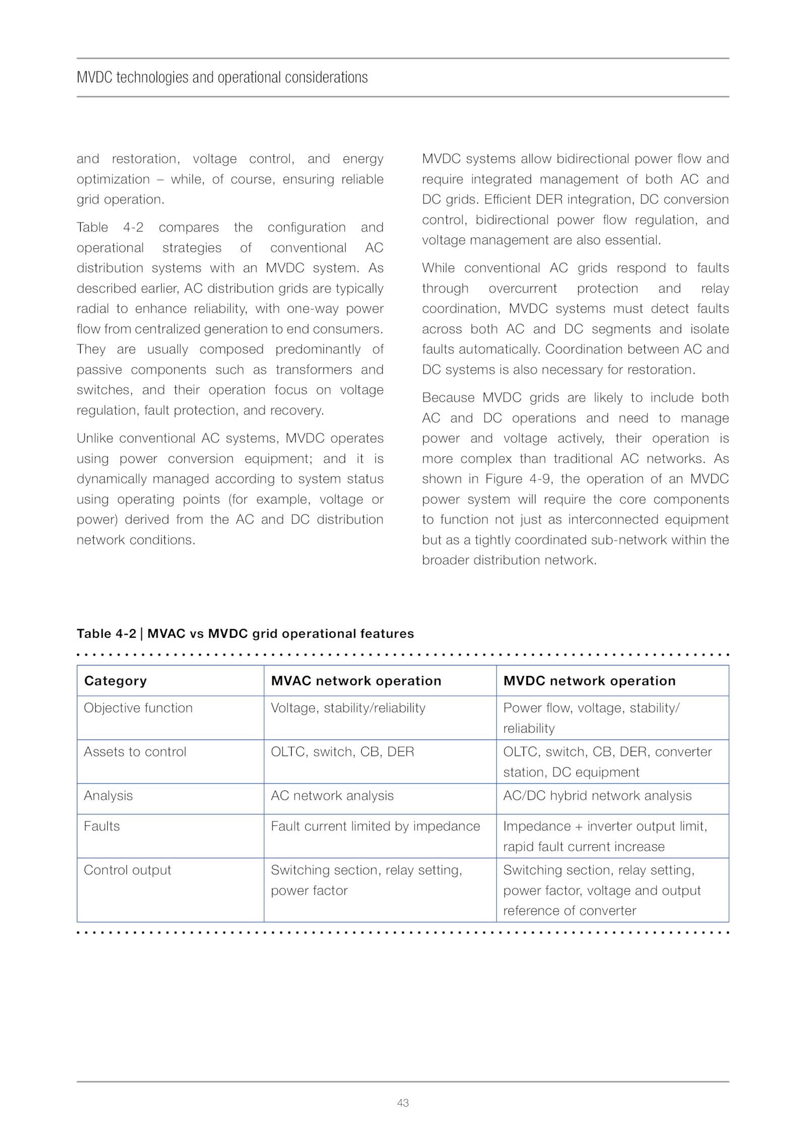 Table 4-2 MVAC MVDC grid operational features