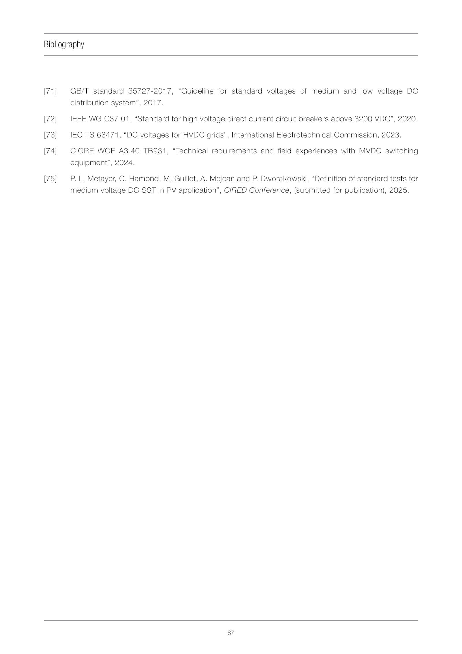 [73] IEC 63471, “DC voltages for HVDC grids”, International Electrotechnical Commission, 2023.