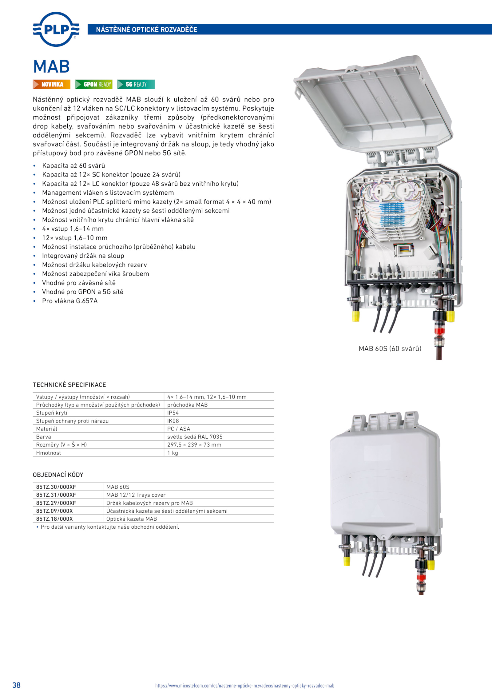ukončení vláken SC/LC konektory listovacím systému.30/000XF MAB 60S