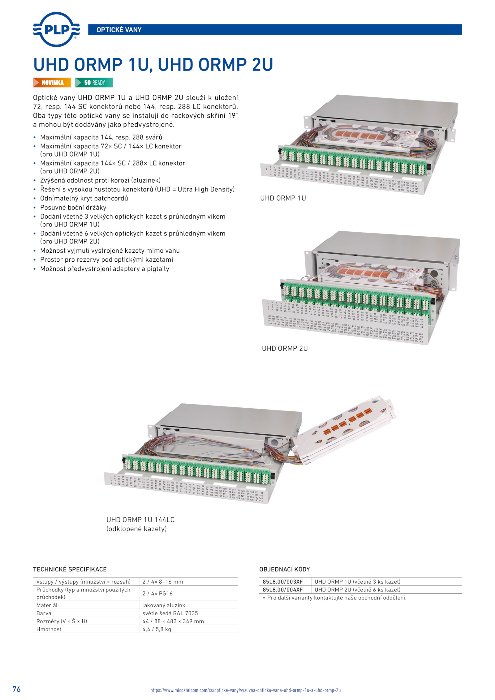 a mohou být dodávány jako předvystrojené. 288 konektorů.https://www.com/cs/opticke-vany/vysuvna-opticka-vana-uhd-ormp-1u-a-uhd-ormp-2u