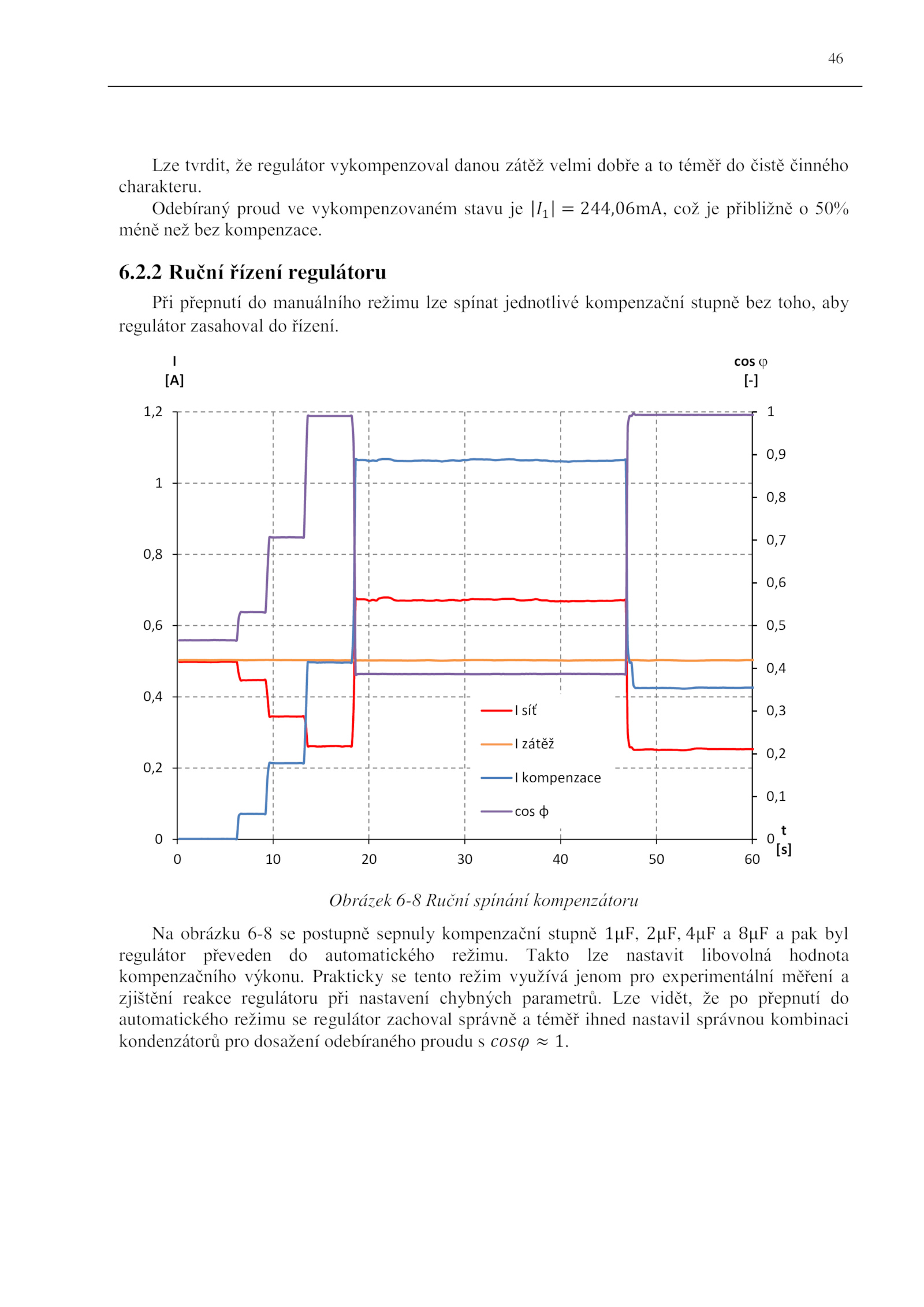 Odebíraný proud vykompenzovaném stavu |𝐼1| 244,06mA, což přibližně 50%