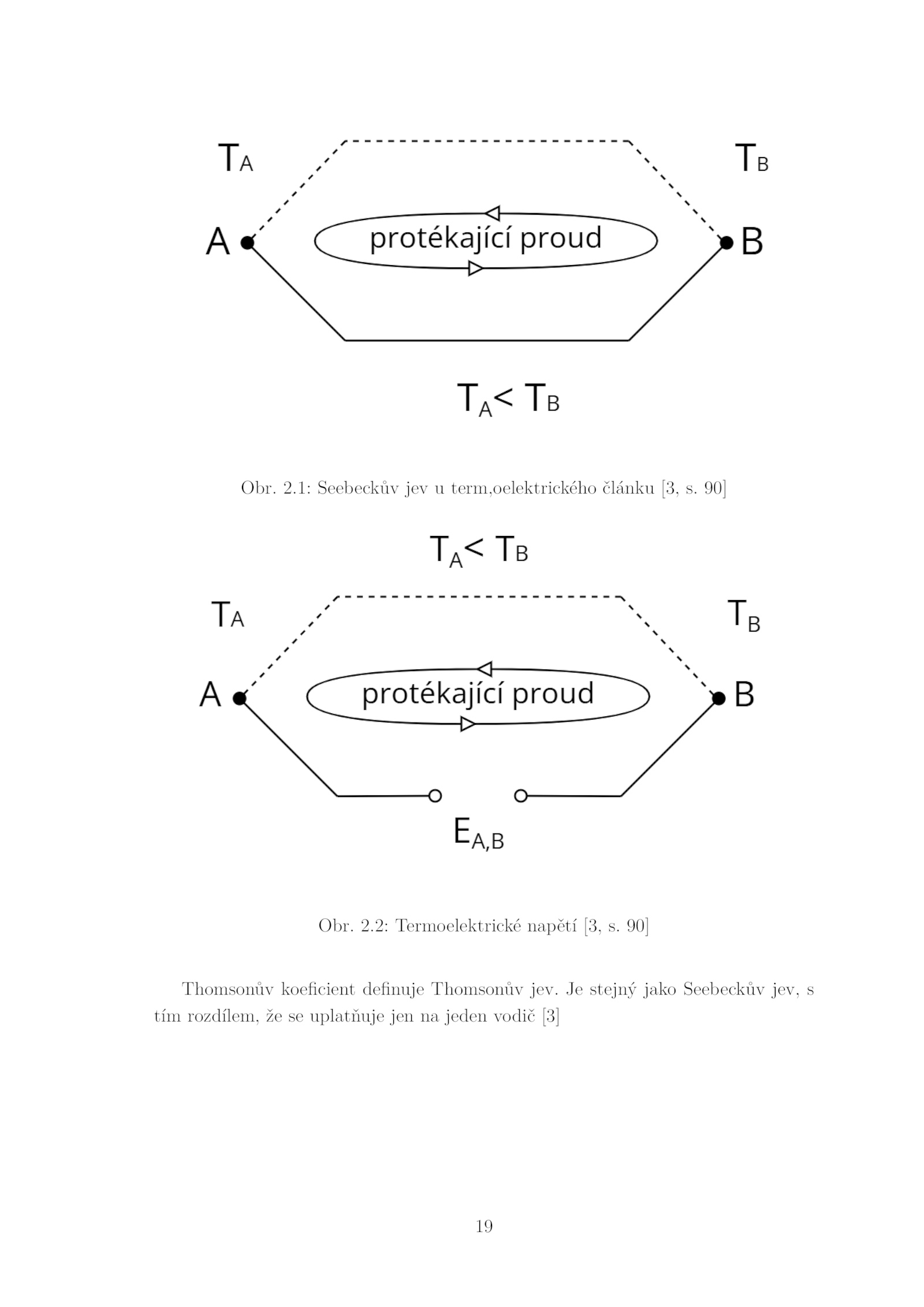 Obr. 2.1: Seebeckův jev term,oelektrického článku [3, 90] Obr. stejný jako Seebeckův jev, s tím rozdílem, uplatňuje jen jeden vodič [3] 19 . 2.2: Termoelektrické napětí [3, 90] Thomsonův koeficient definuje Thomsonův jev