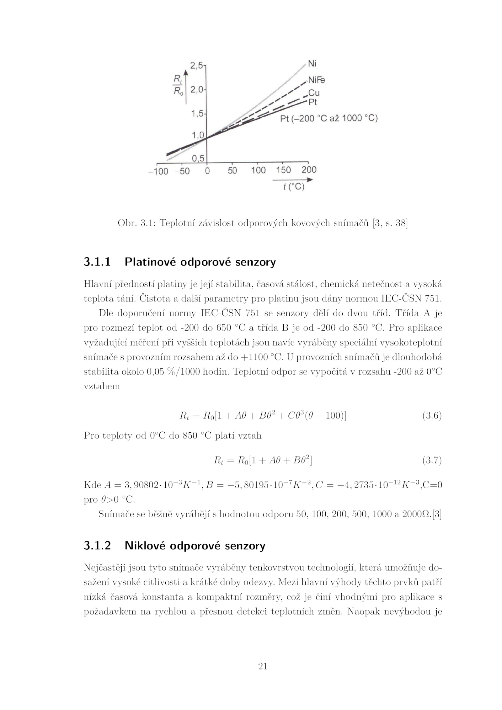 pro rozmezí teplot -200 650 třída -200 850 °C.1: Teplotní závislost odporových kovových snímačů [3, 38]