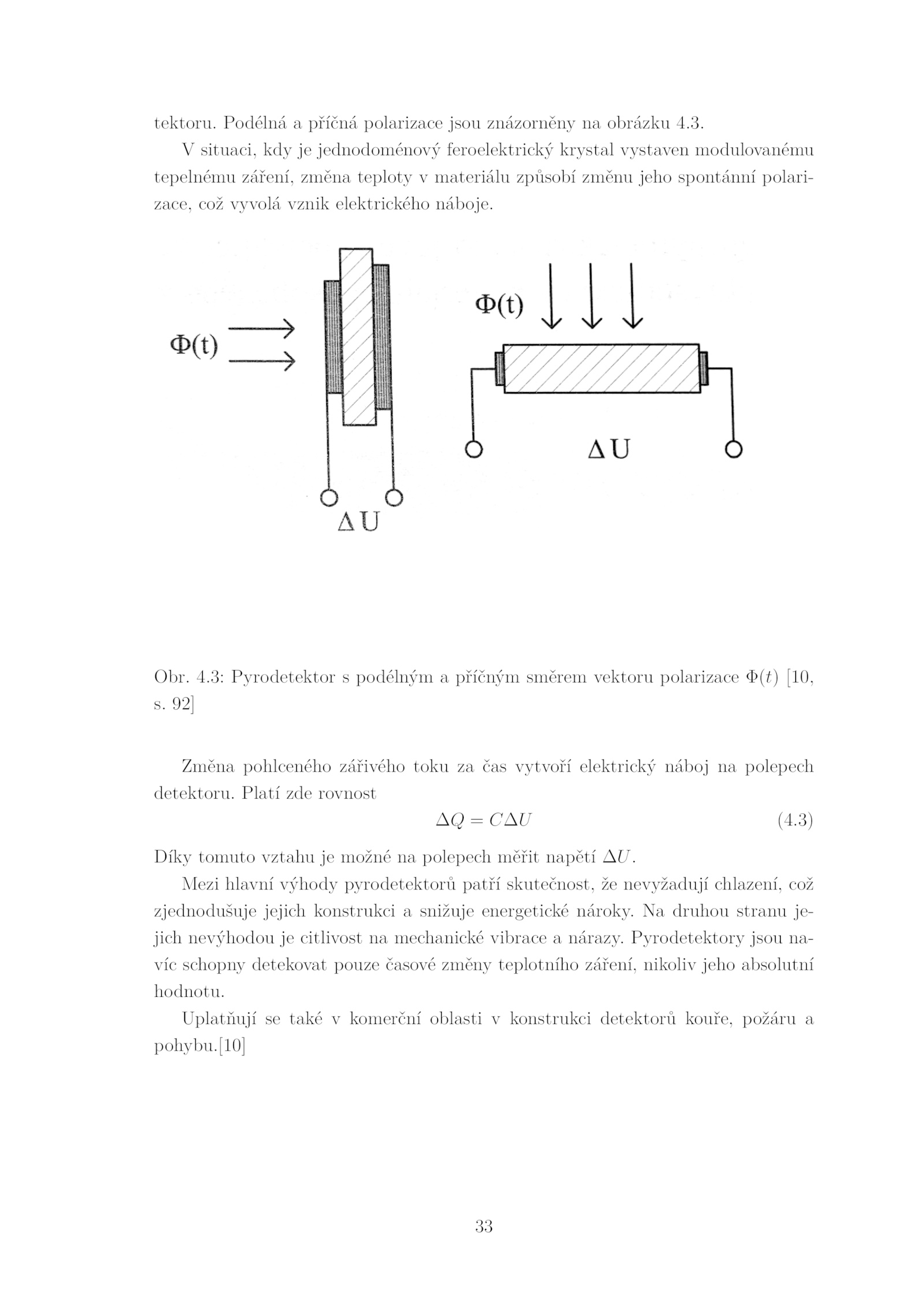 Obr.3: Pyrodetektor podélným příčným směrem vektoru polarizace Φ(𝑡) [10,