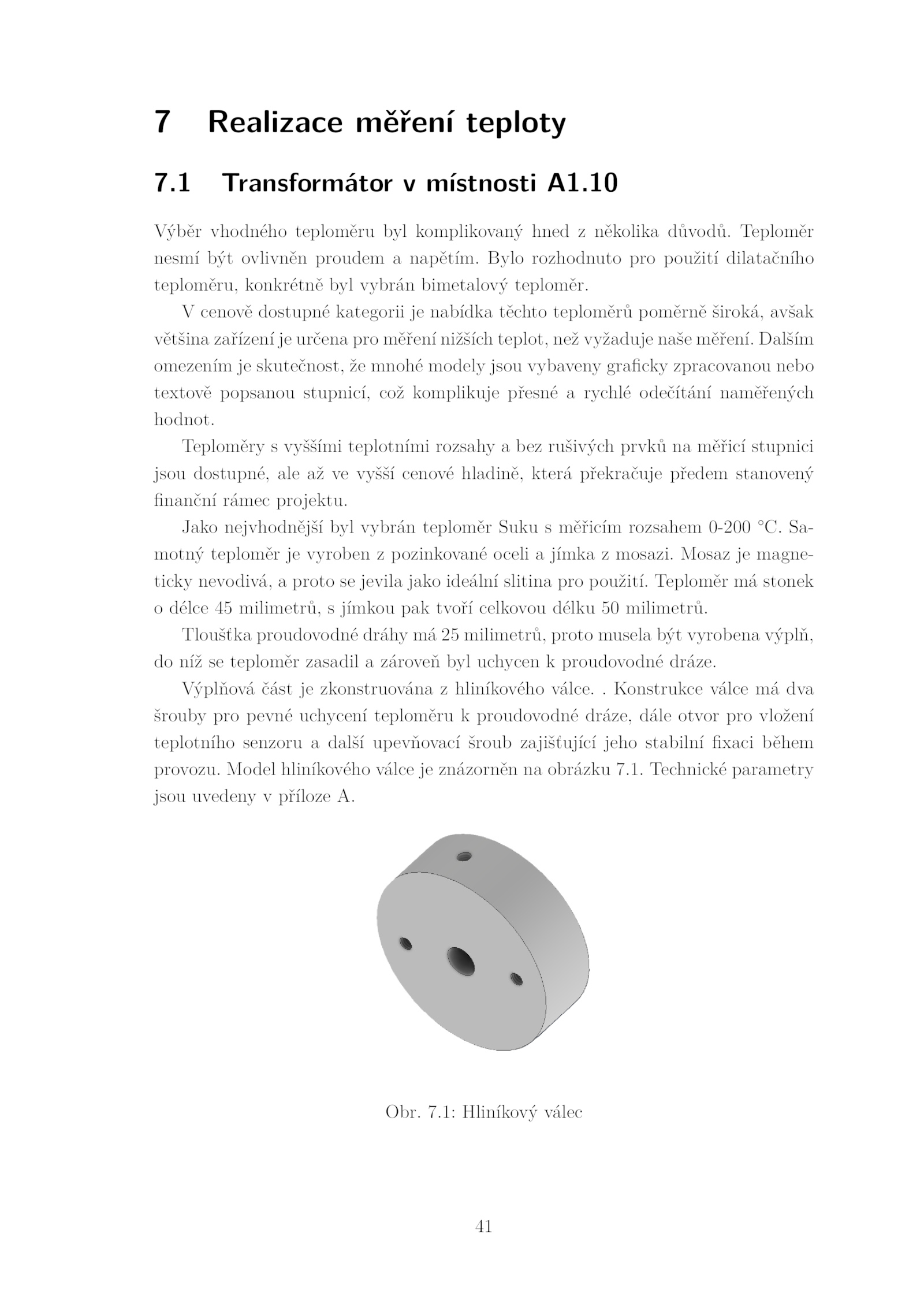 do níž teploměr zasadil zároveň byl uchycen proudovodné dráze. Model hliníkového válce znázorněn obrázku 7.