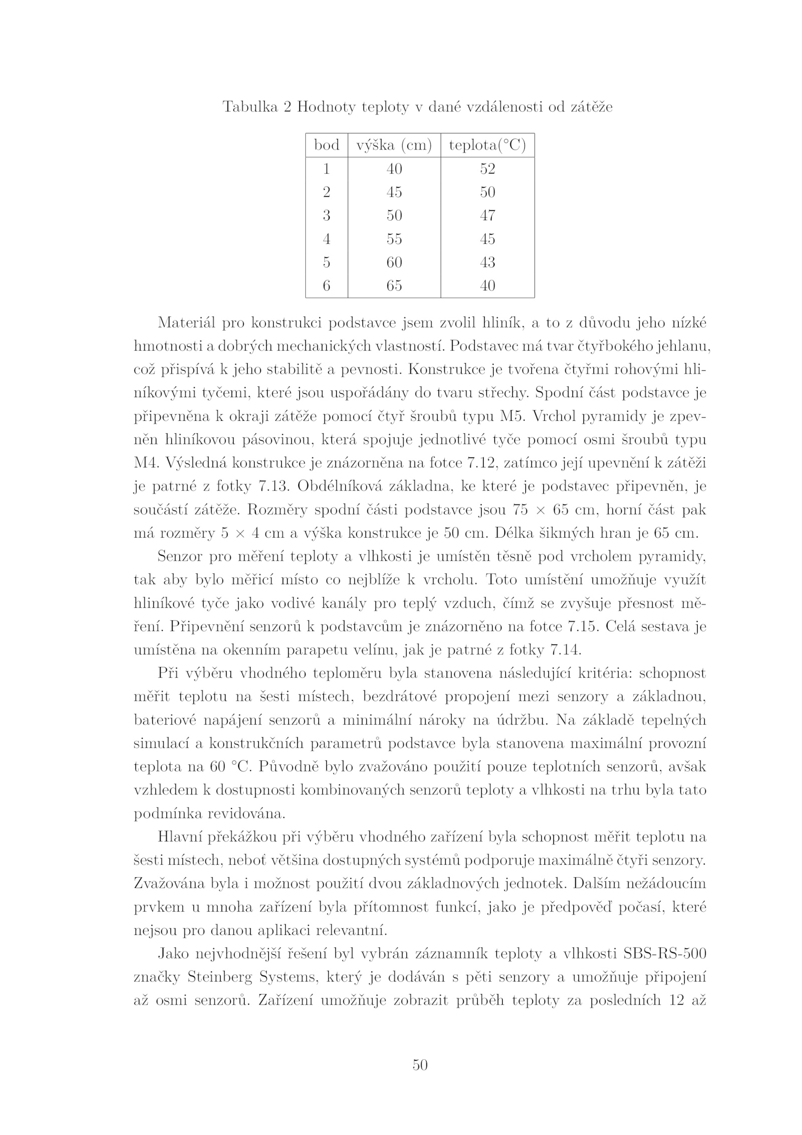 níkovými tyčemi, které jsou uspořádány tvaru střechy.15. Délka šikmých hran cm.14.Tabulka Hodnoty teploty dané vzdálenosti zátěže