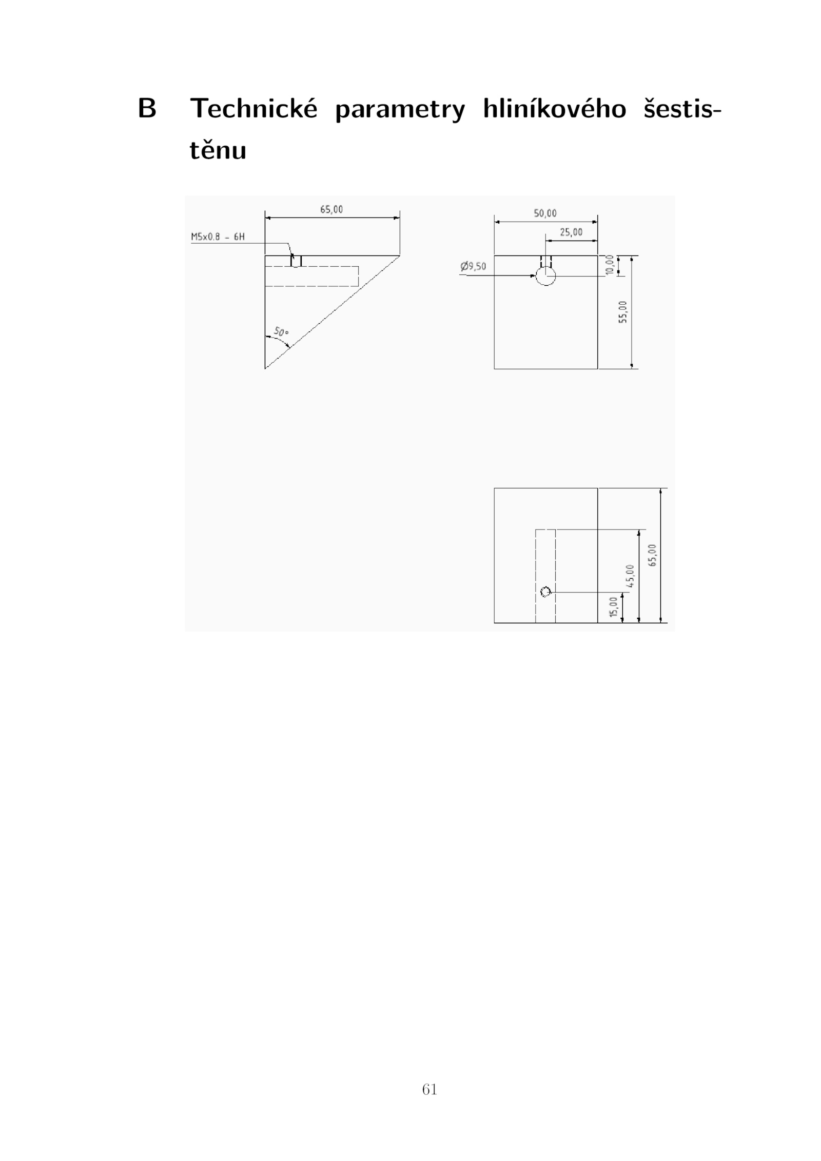 Technické parametry hliníkového šestis- těnu 61