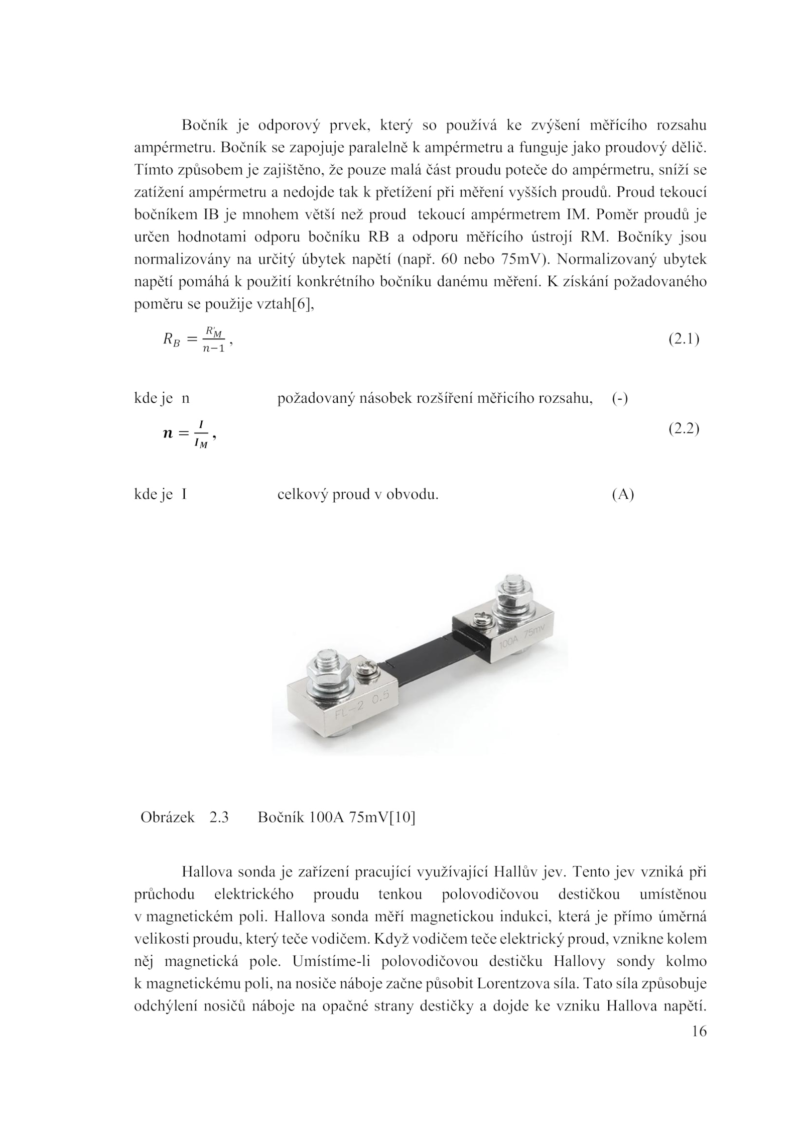 napětí pomáhá použití konkrétního bočníku danému měření. nebo 75mV). Hallova sonda měří magnetickou indukci, která přímo úměrná