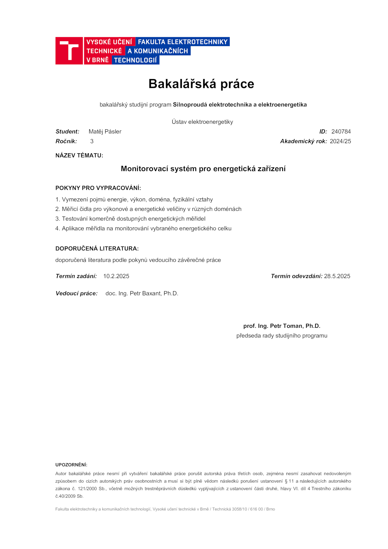 2.2025 Termín odevzdání: 28. Testování komerčně dostupných energetických měřidel