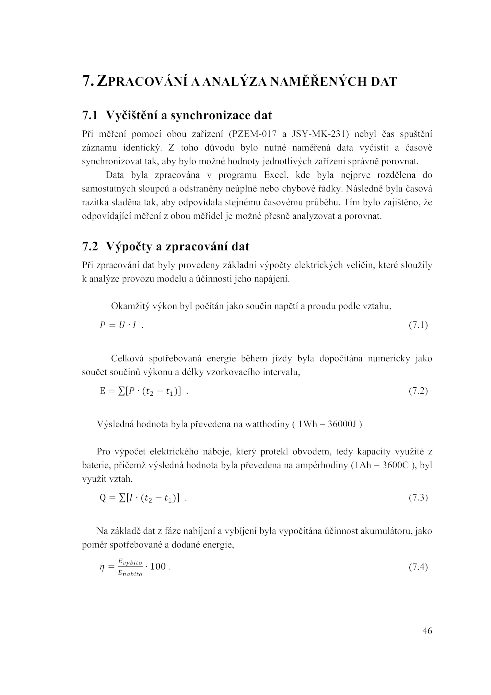 Při zpracování dat byly provedeny základní výpočty elektrických veličin, které sloužily