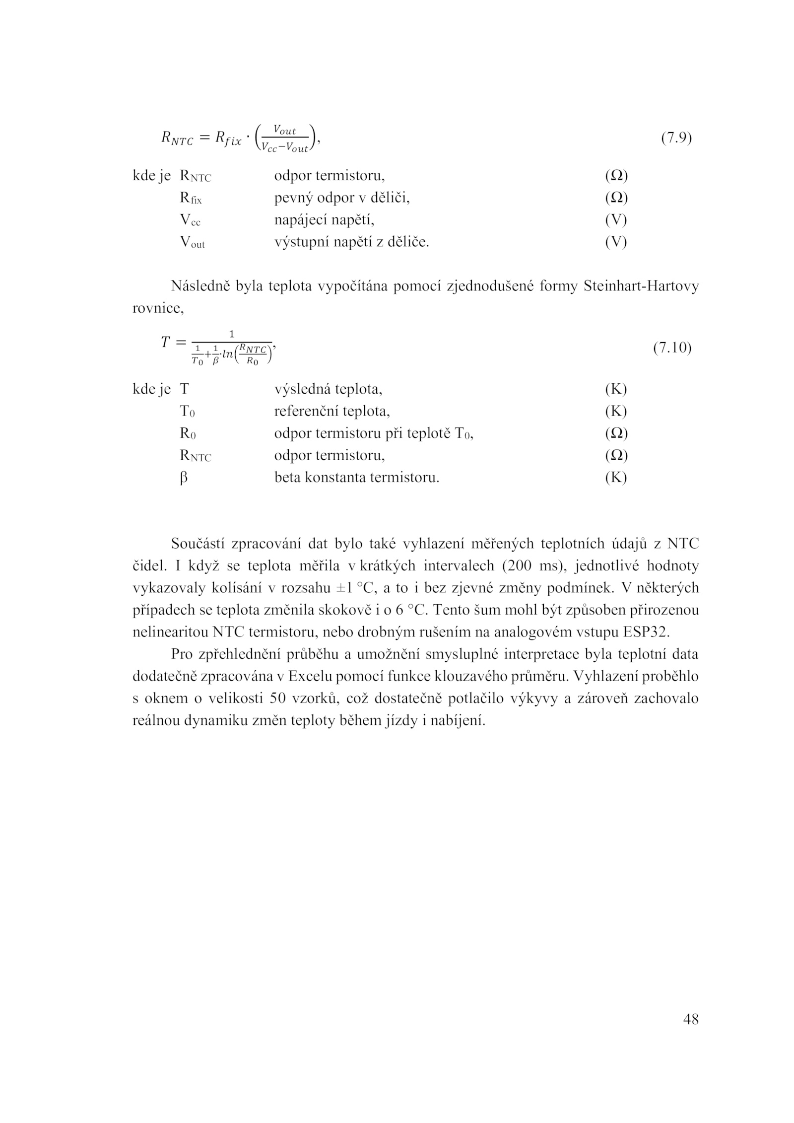 Následně byla teplota vypočítána pomocí zjednodušené formy Steinhart-Hartovy
