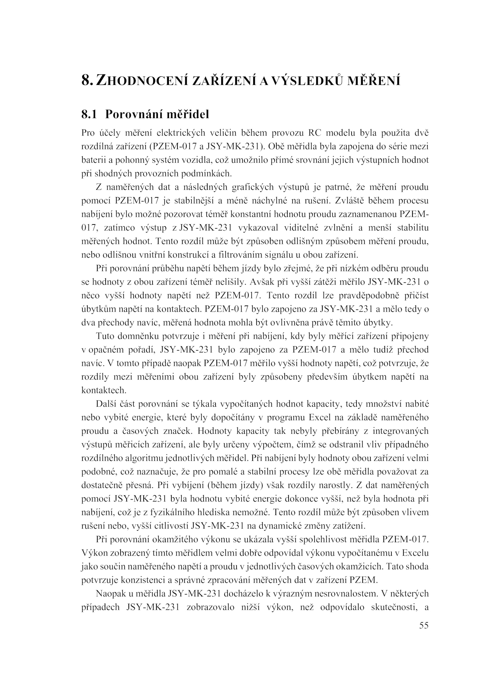 nabíjení, což fyzikálního hlediska nemožné.ZHODNOCENÍ ZAŘÍZENÍ VÝSLEDKŮ MĚŘENÍ