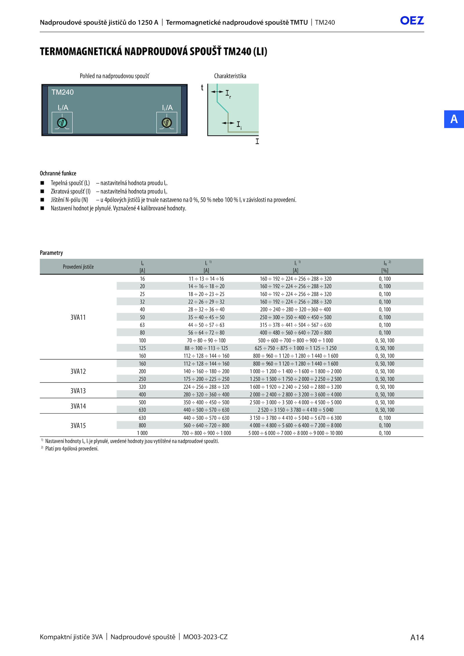 Kompaktní jističe 3VA Nadproudové spouště MO03-2023-CZ