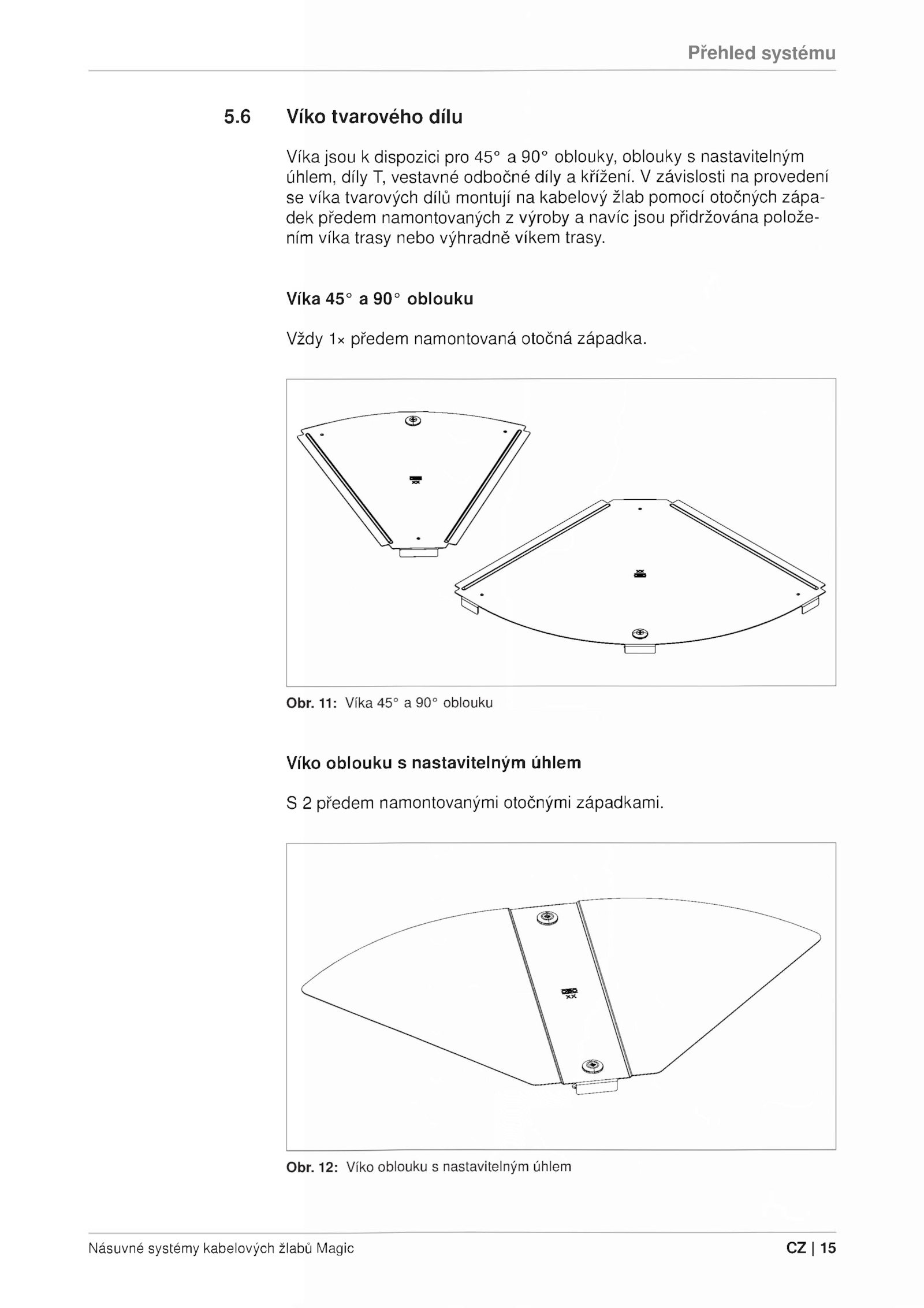 Víka jsou dispozici pro 45° 90° oblouky, oblouky nastavitelným