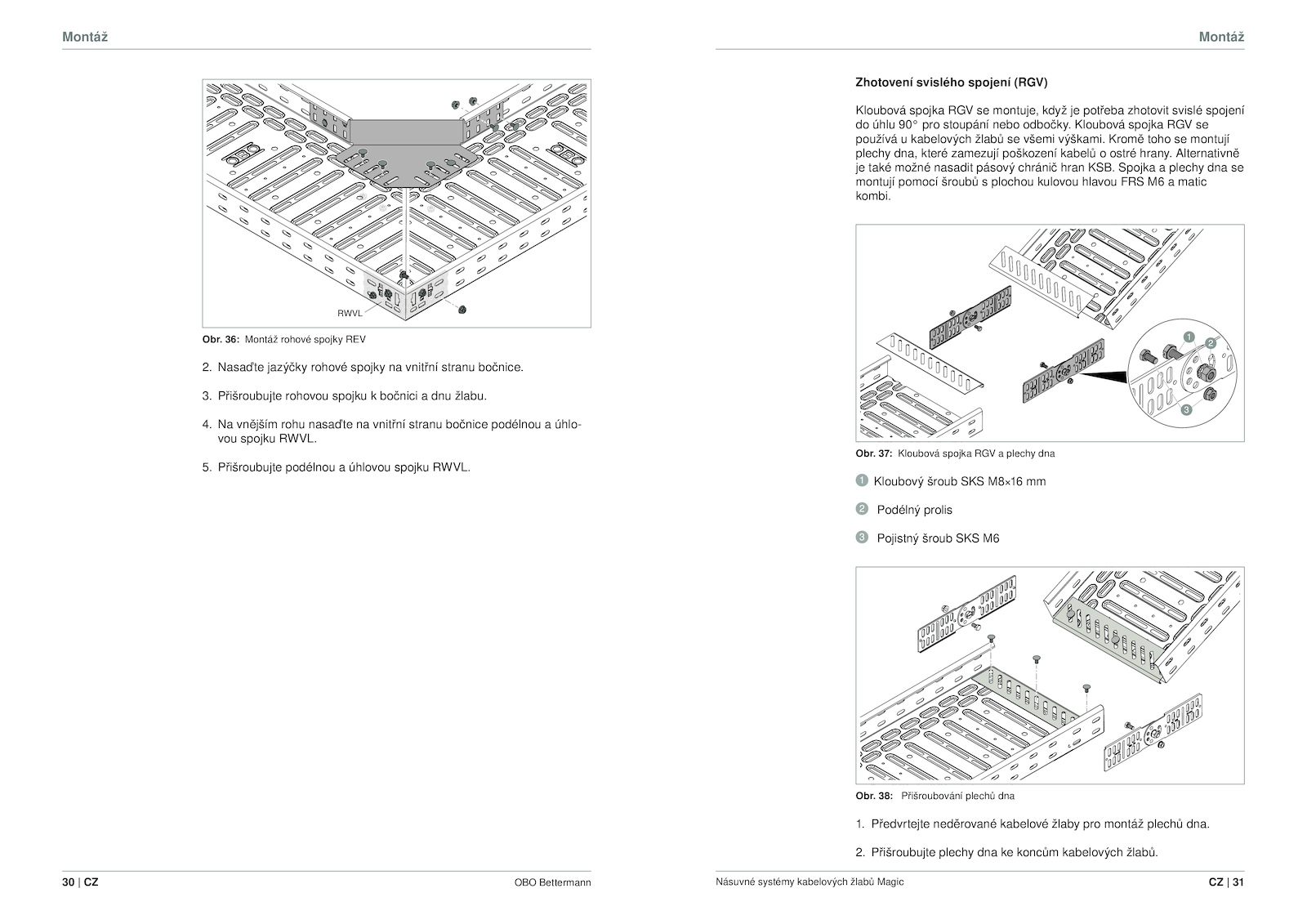 5. Přišroubujte plechy dna koncům kabelových žlabů. Spojka plechy dna se