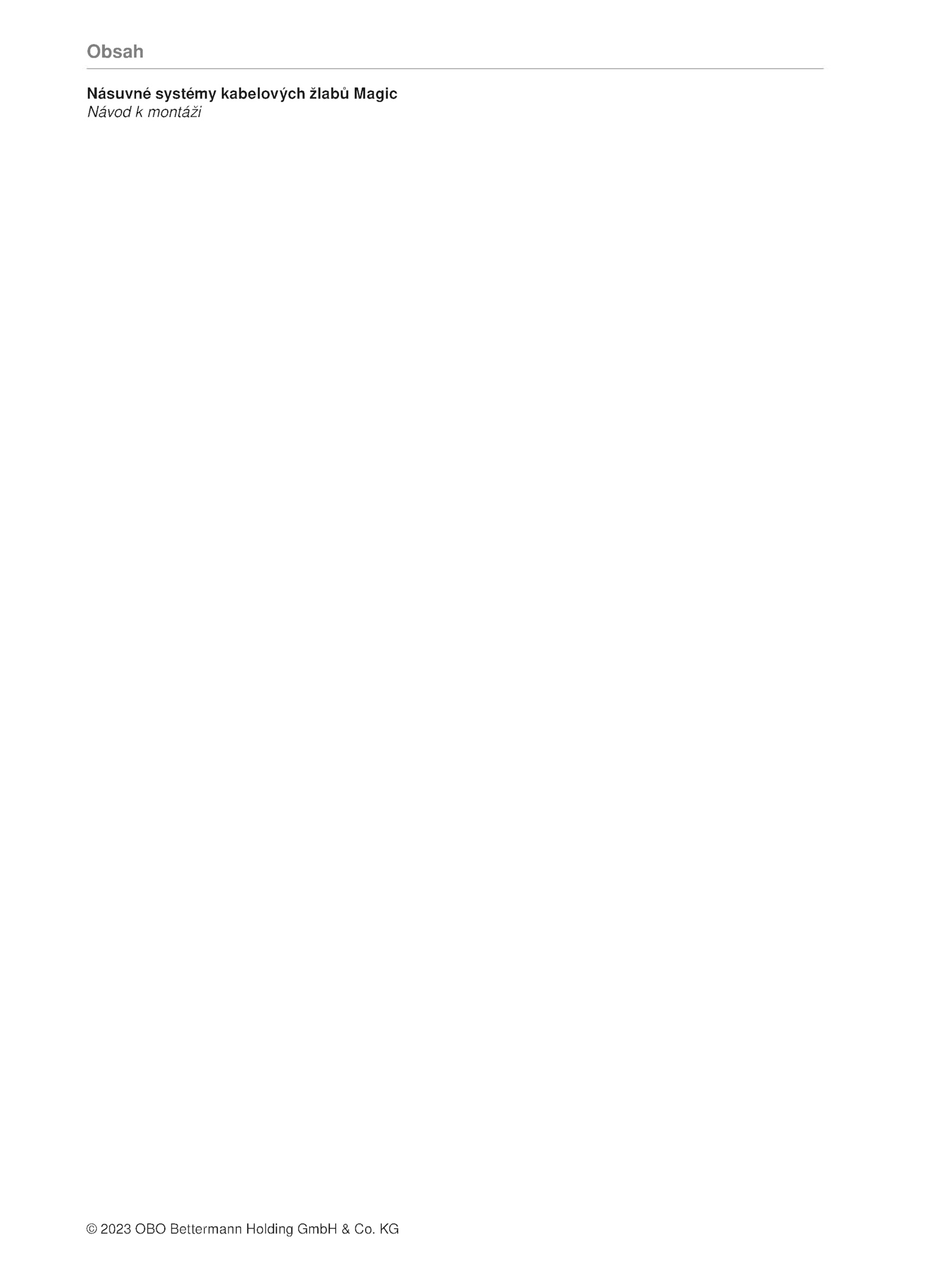 Obsah Násuvné systémy kabelových žlabů Magic Návod montáži © 2023 OBO Bettermann Holding GmbH Co. KG
