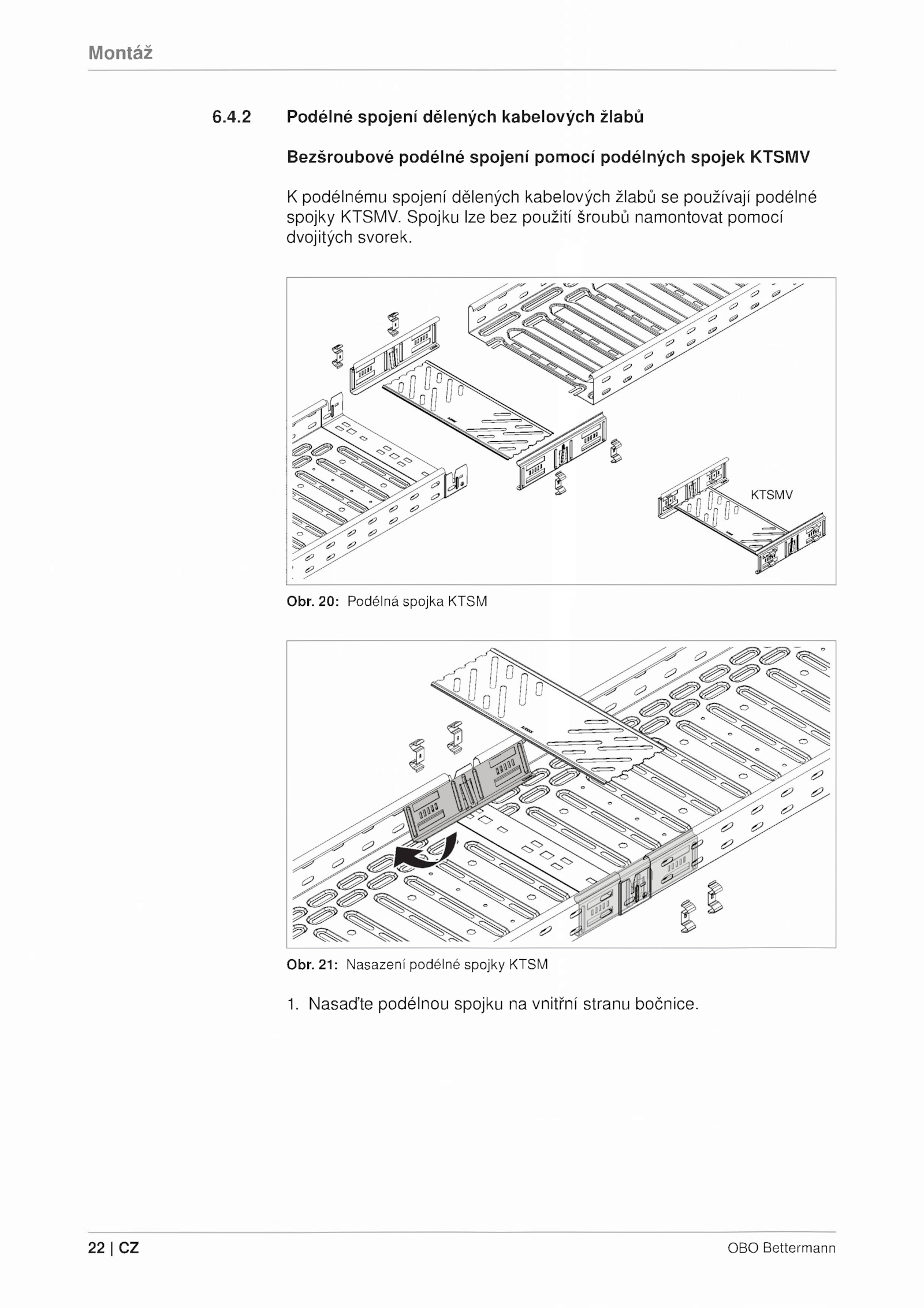 Obr. Nasaďte podélnou spojku vnitřní stranu bočnice.4.2 Podélné spojení dělených kabelových žlabů