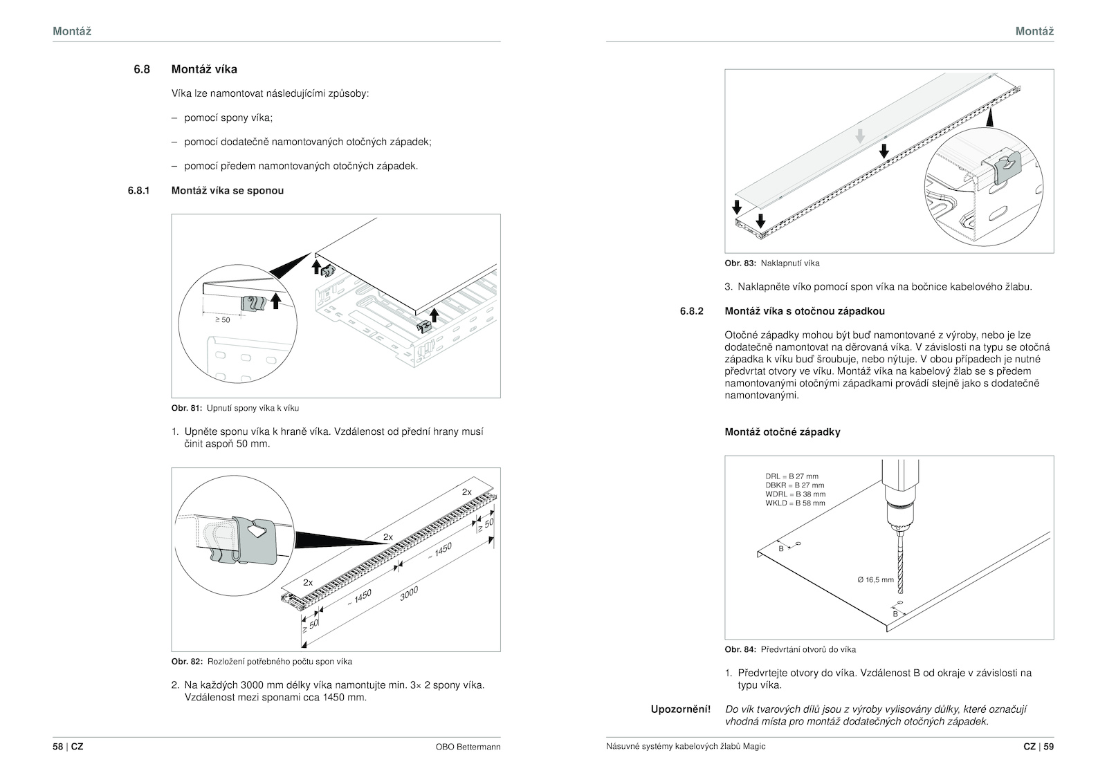 Obr.8. Naklapněte víko pomocí spon víka bočnice kabelového žlabu. Vzdálenost okraje závislosti na