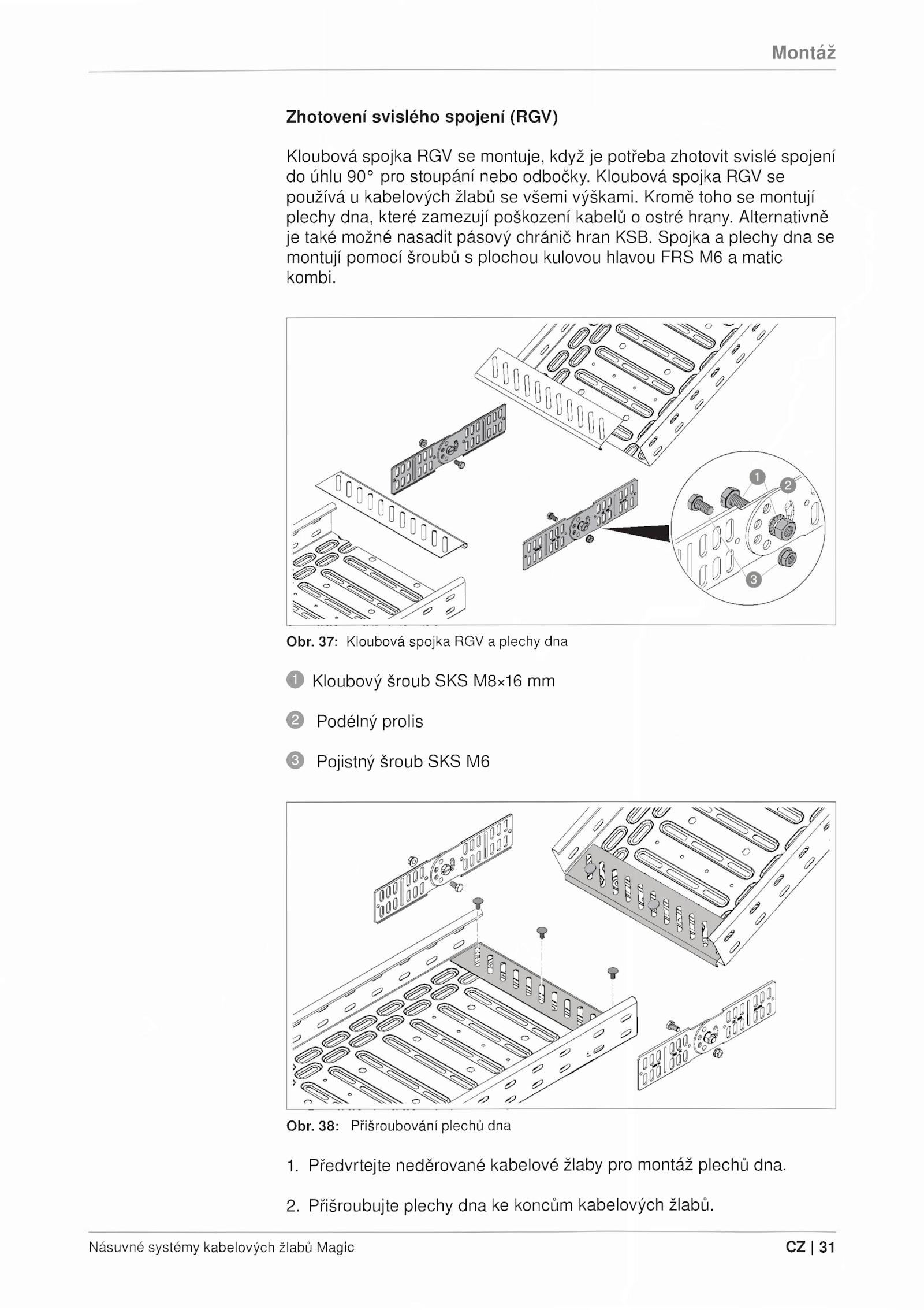 používá kabelových žlabů všemi výškami. Přišroubujte plechy dna koncům kabelových žlabů.