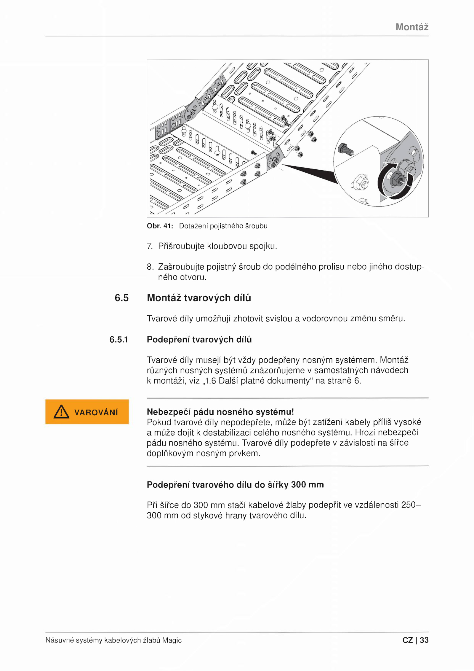doplňkovým nosným prvkem. 41: Dotažení pojistného šroubu