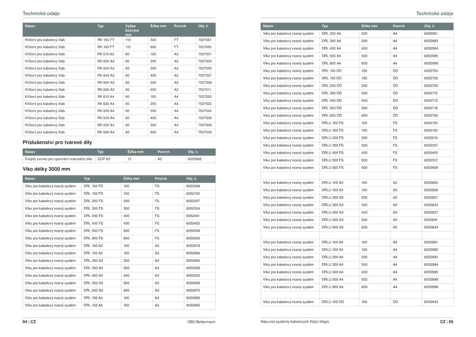 Víko pro kabelový nosný systém DRL 600 600 6052606