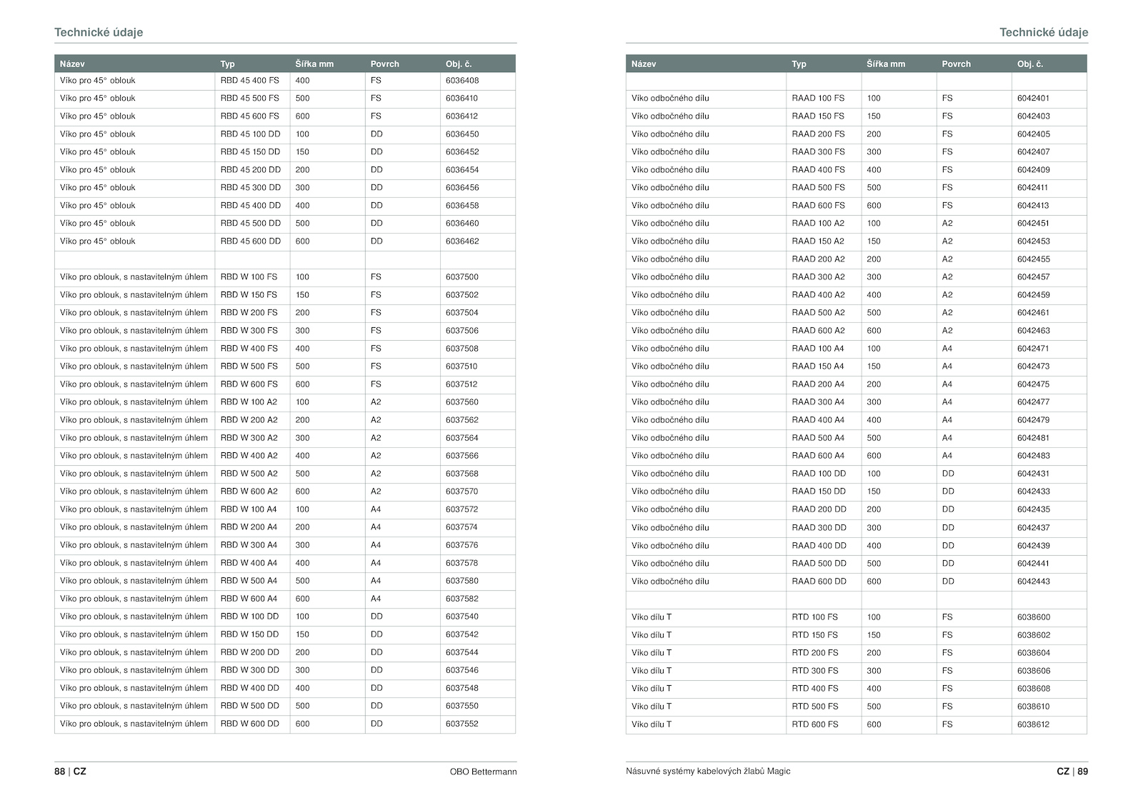 Název Typ Šířka Povrch Obj. č. č.