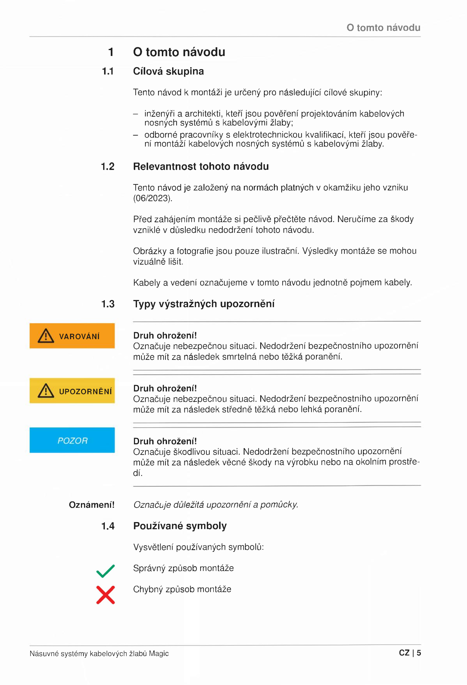 Násuvné systémy kabelových žlabů Magie.2 Relevantnost tohoto návodu