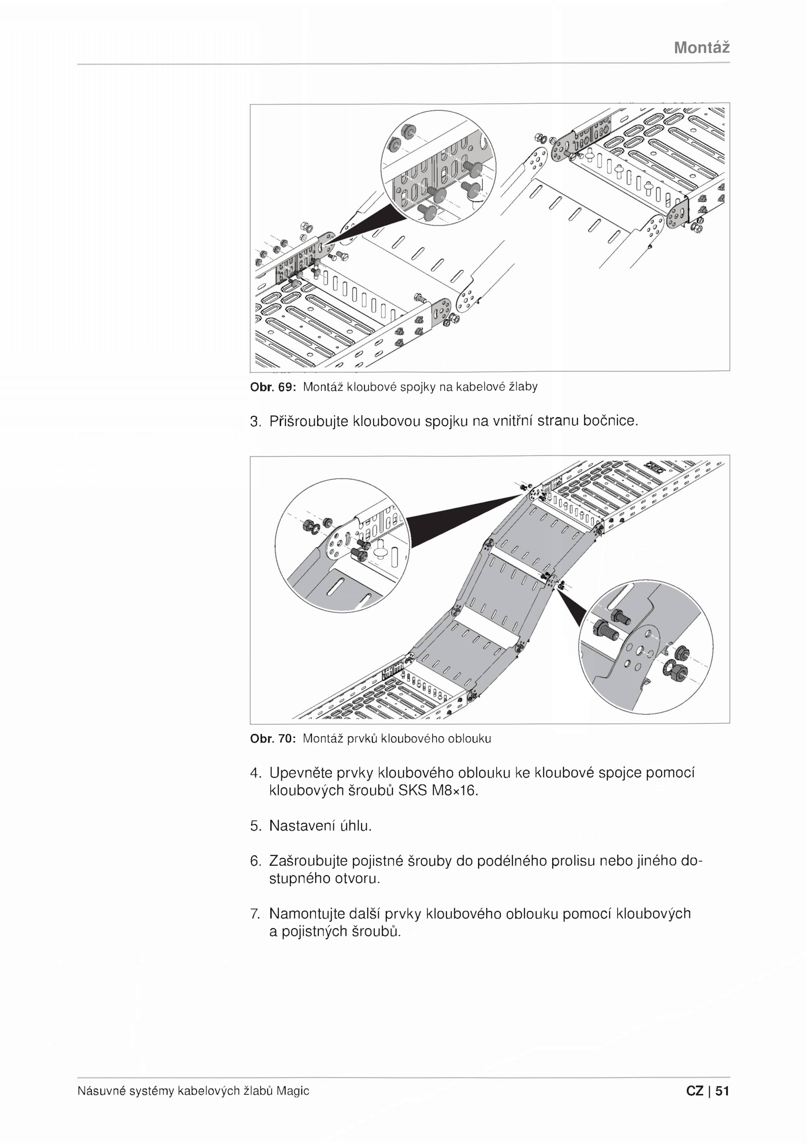 kloubových šroubů SKS M8x16. 69: Montáž kloubové spojky kabelové žlaby