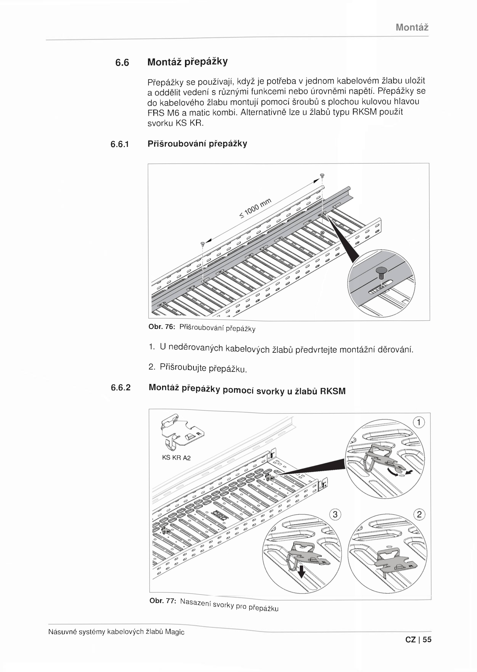 a oddělit vedení různými funkcemi nebo úrovněmi napětí.2 Montáž přepážky pomocí svorky žlabů RKSM