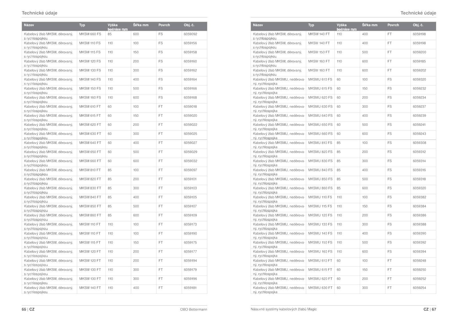 66 OBO Bettermann Násuvné systémy kabelových žlabů Magic 67