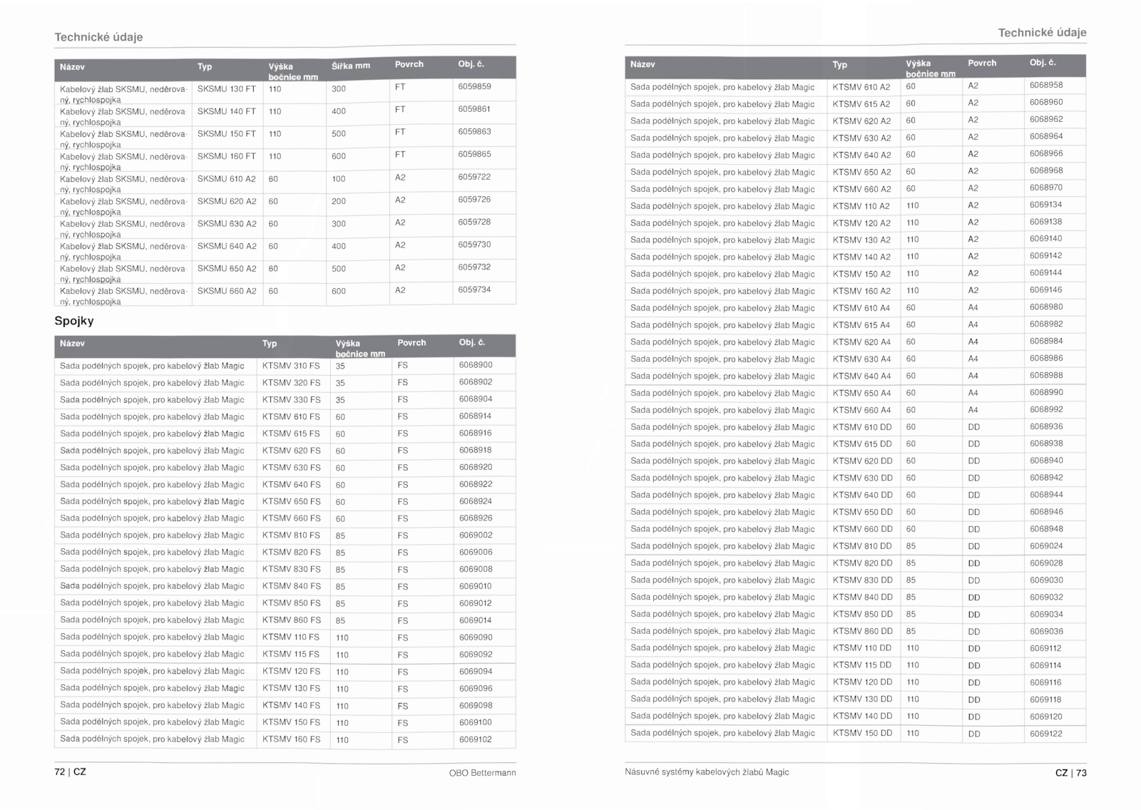 72 0B0 Bettermann Násuvné systémy kabelových žlabů Magie 73