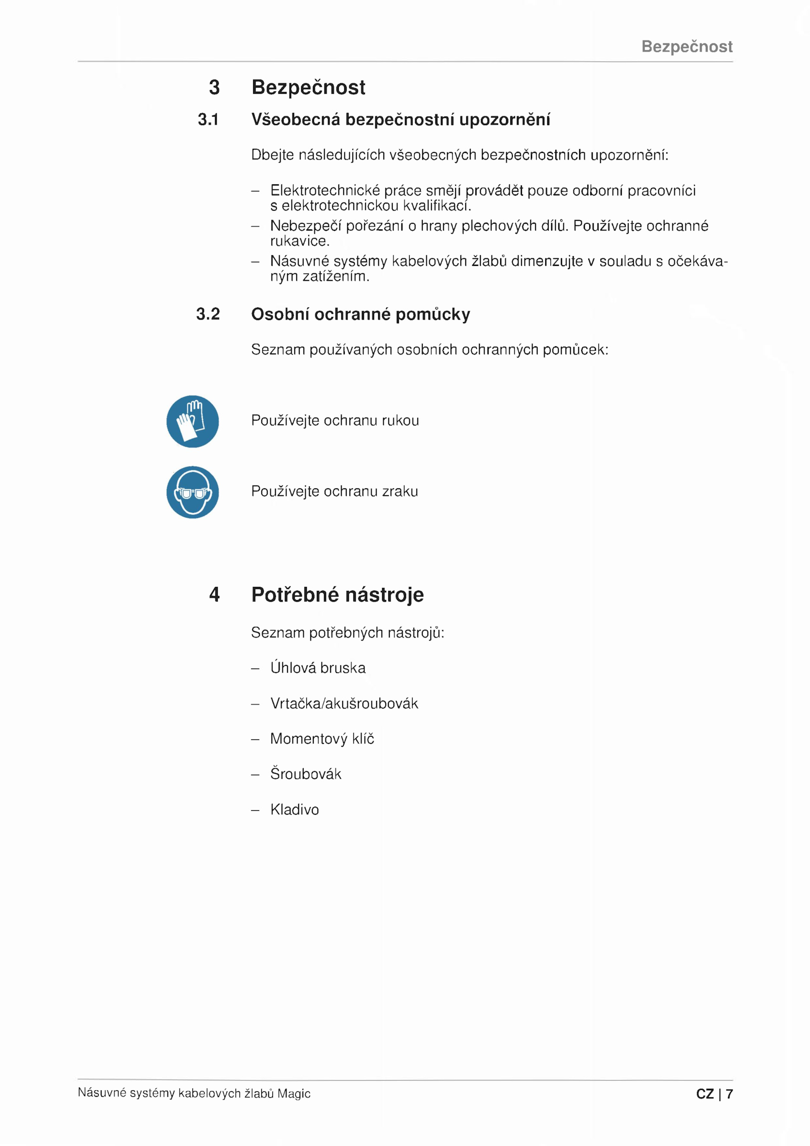 - Nebezpečí pořezání hrany plechových dílů. Používejte ochranné