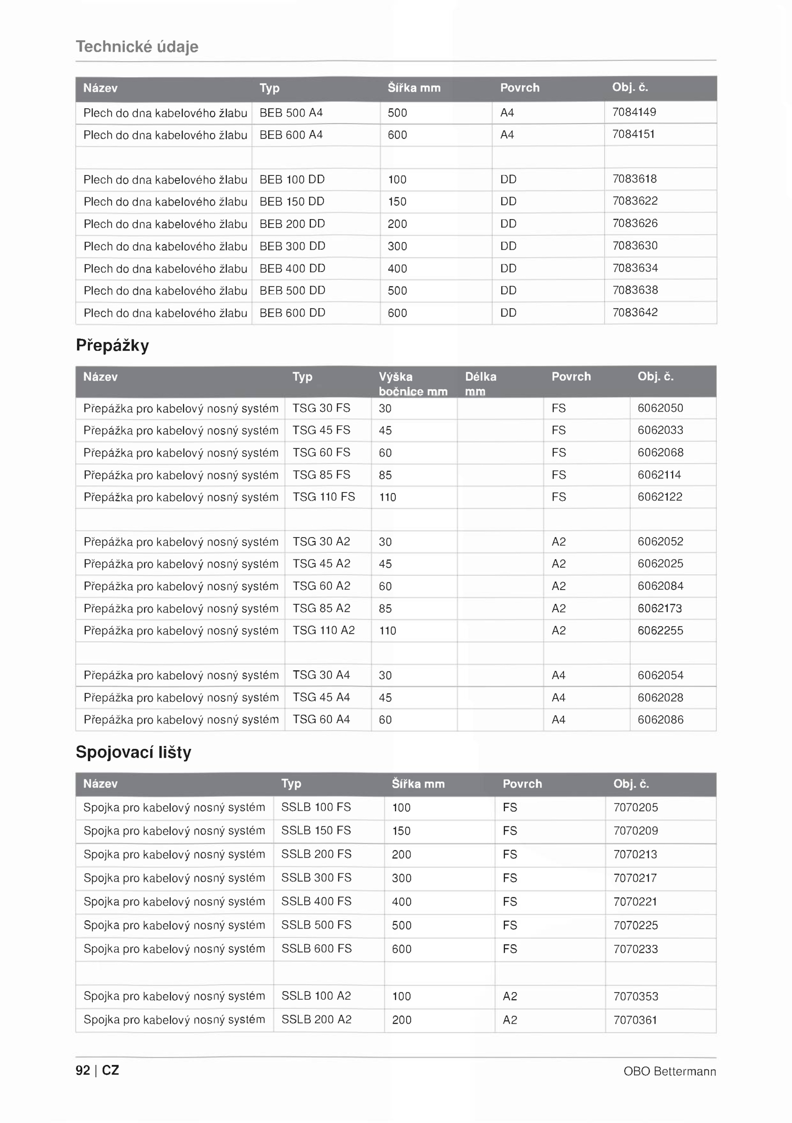 Název Typ Šířka Povrch Obj. č.Technické údaje