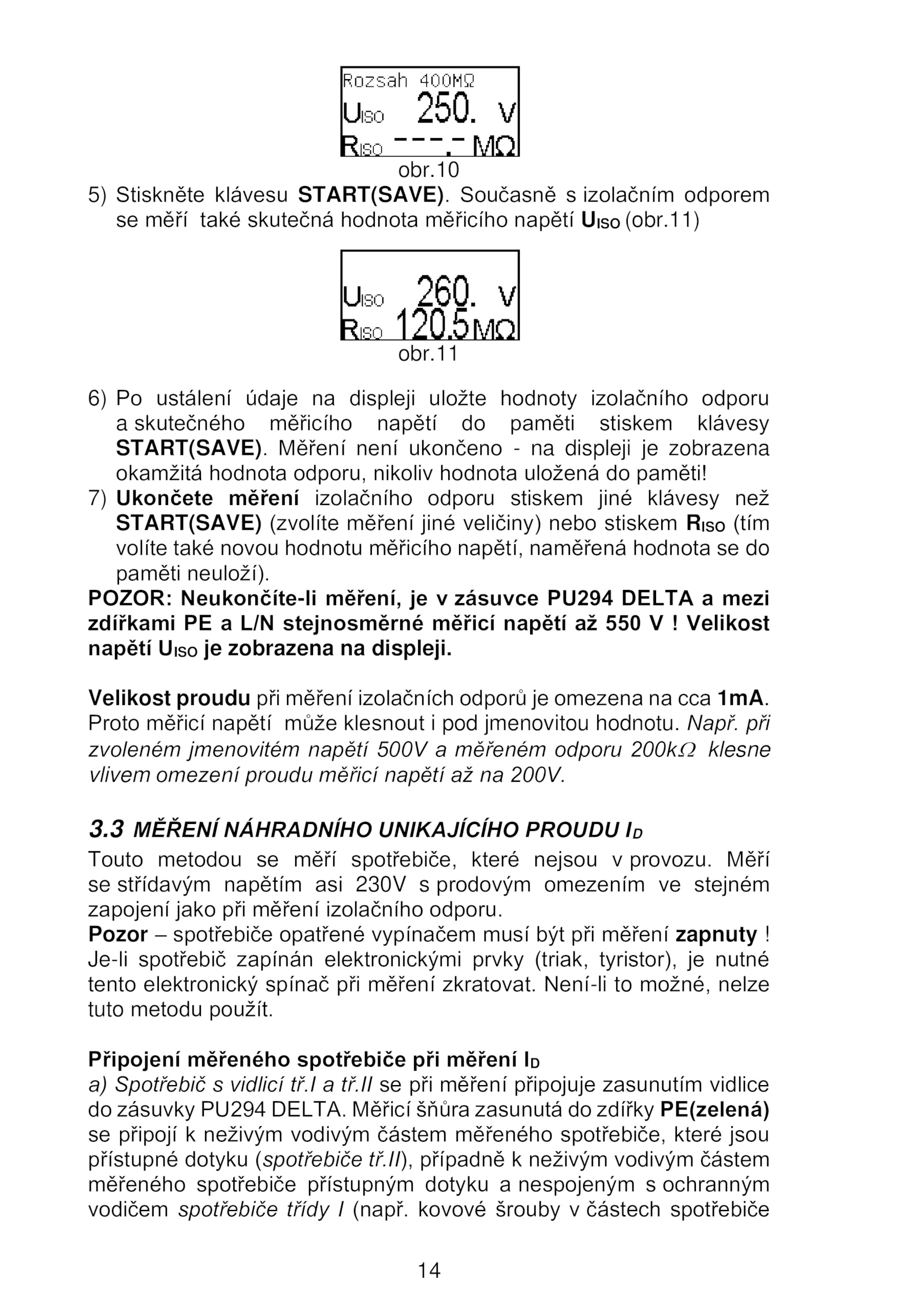 Proto měřicí napětí může klesnout pod jmenovitou hodnotu.3 MĚŘENÍ NÁHRADNÍHO UNIKAJÍCÍHO PROUDU ID