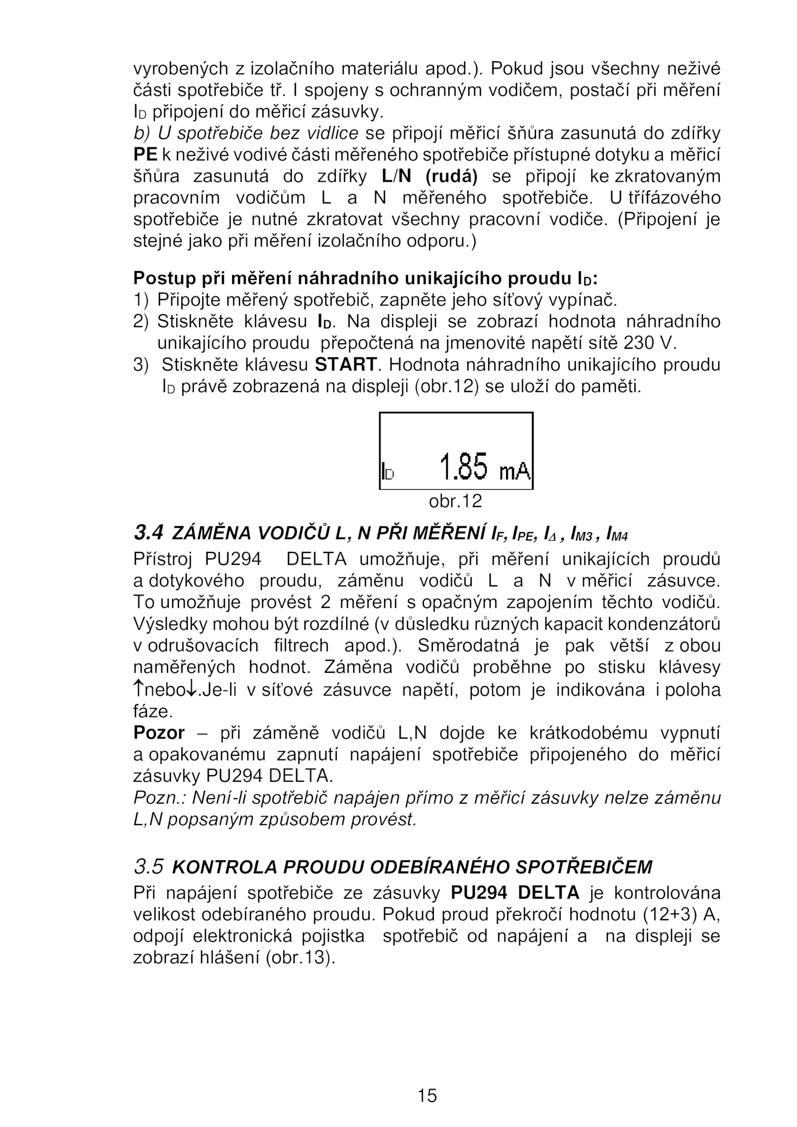pracovním vodičům měřeného spotřebiče.4 ZÁMĚNA VODIČŮ PŘI MĚŘENÍ IF, IPE, IM3 IM4
