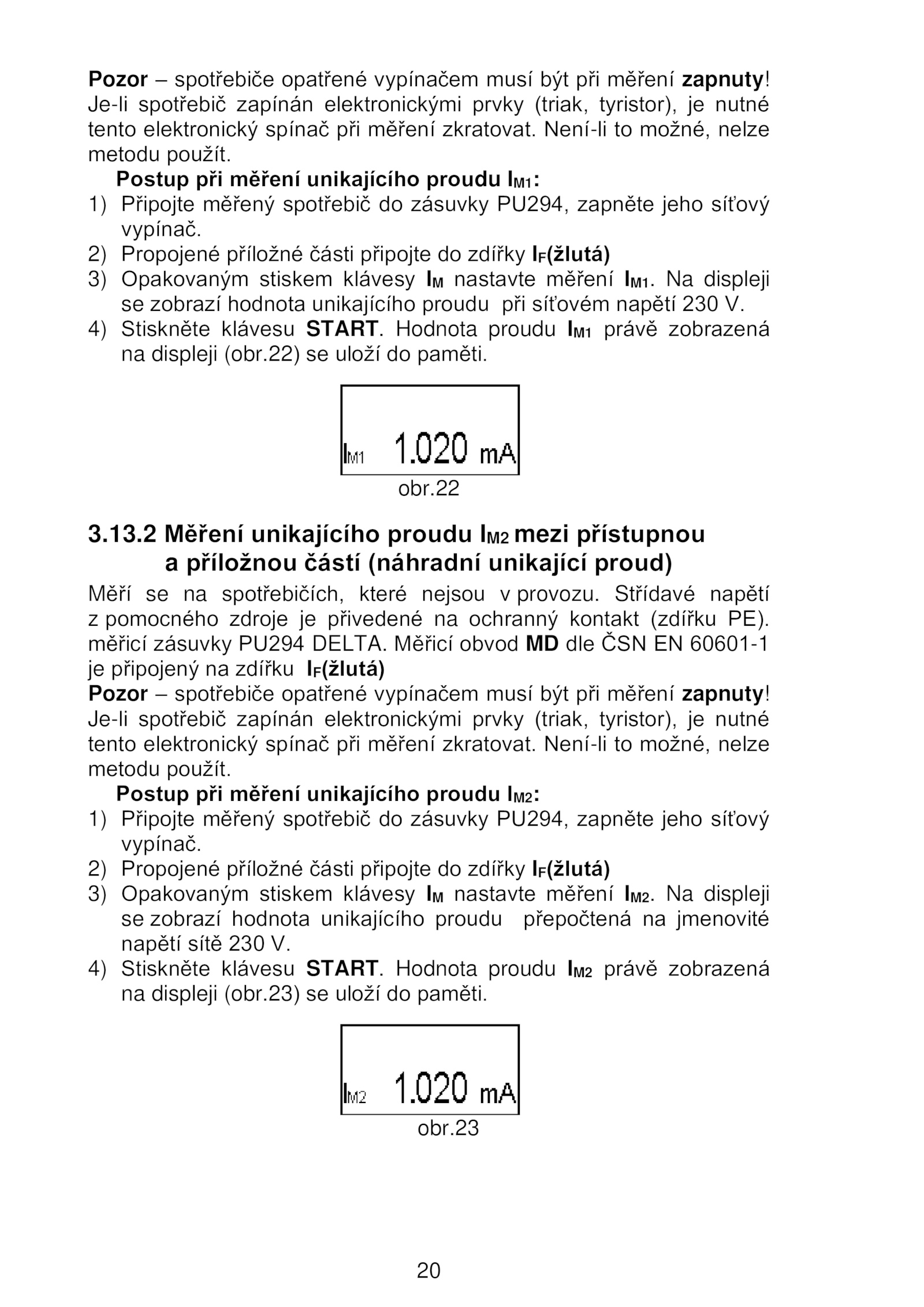 se zobrazí hodnota unikajícího proudu při síťovém napětí 230 V.20