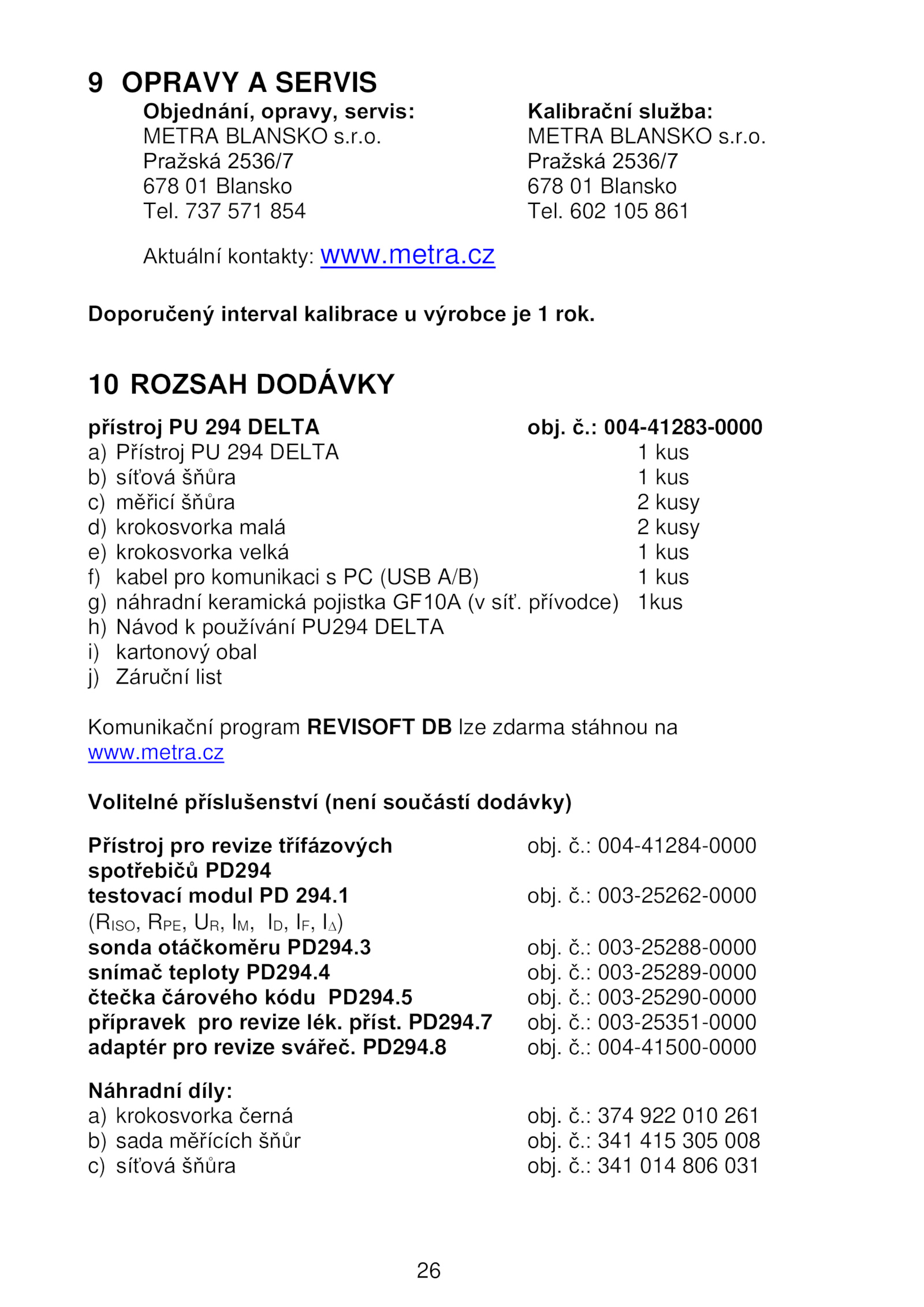Objednání, opravy, servis: Kalibrační služba: