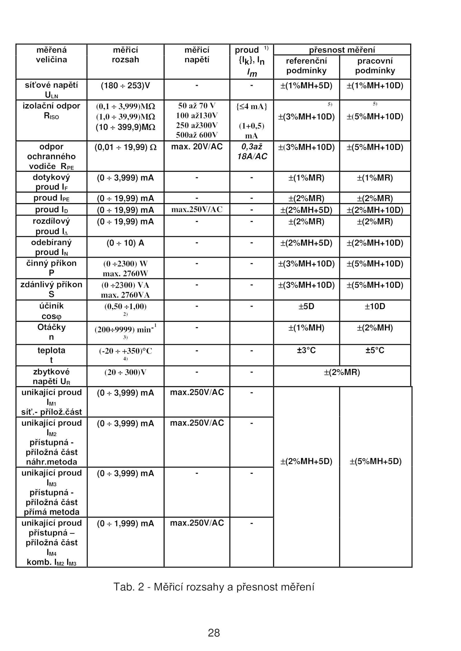 max.- přílož. Měřicí rozsahy přesnost měření