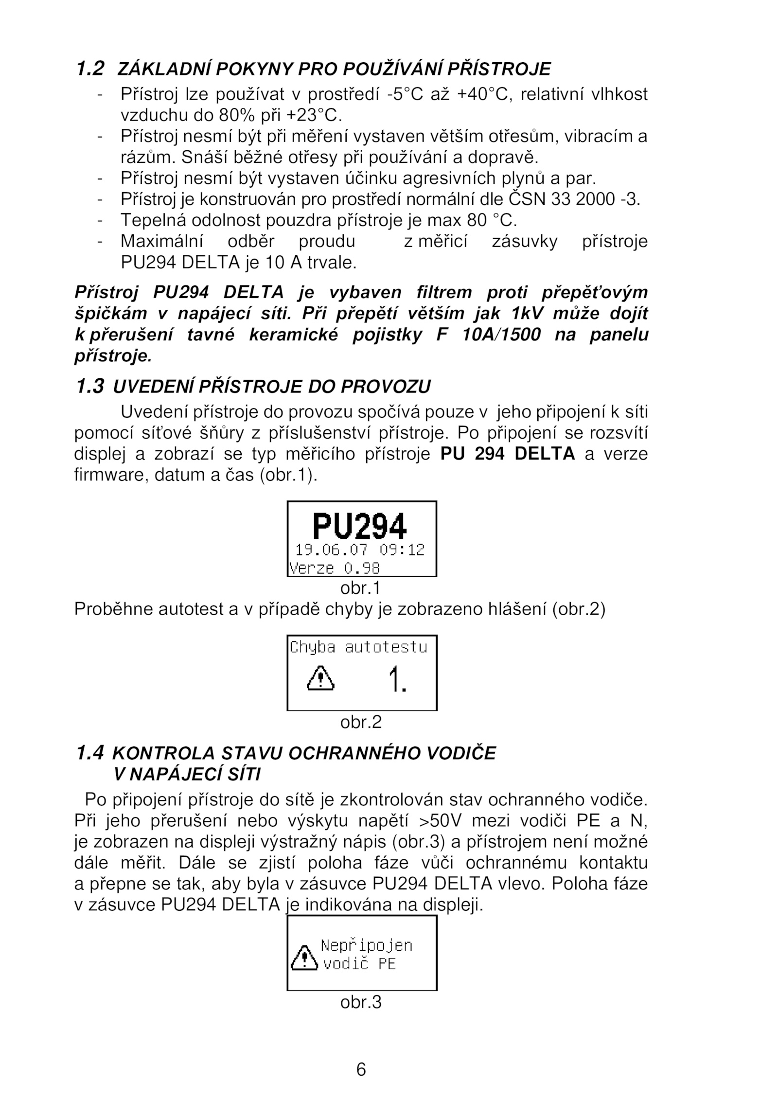 a přepne tak, aby byla zásuvce PU294 DELTA vlevo.2 ZÁKLADNÍ POKYNY PRO POUŽÍVÁNÍ PŘÍSTROJE